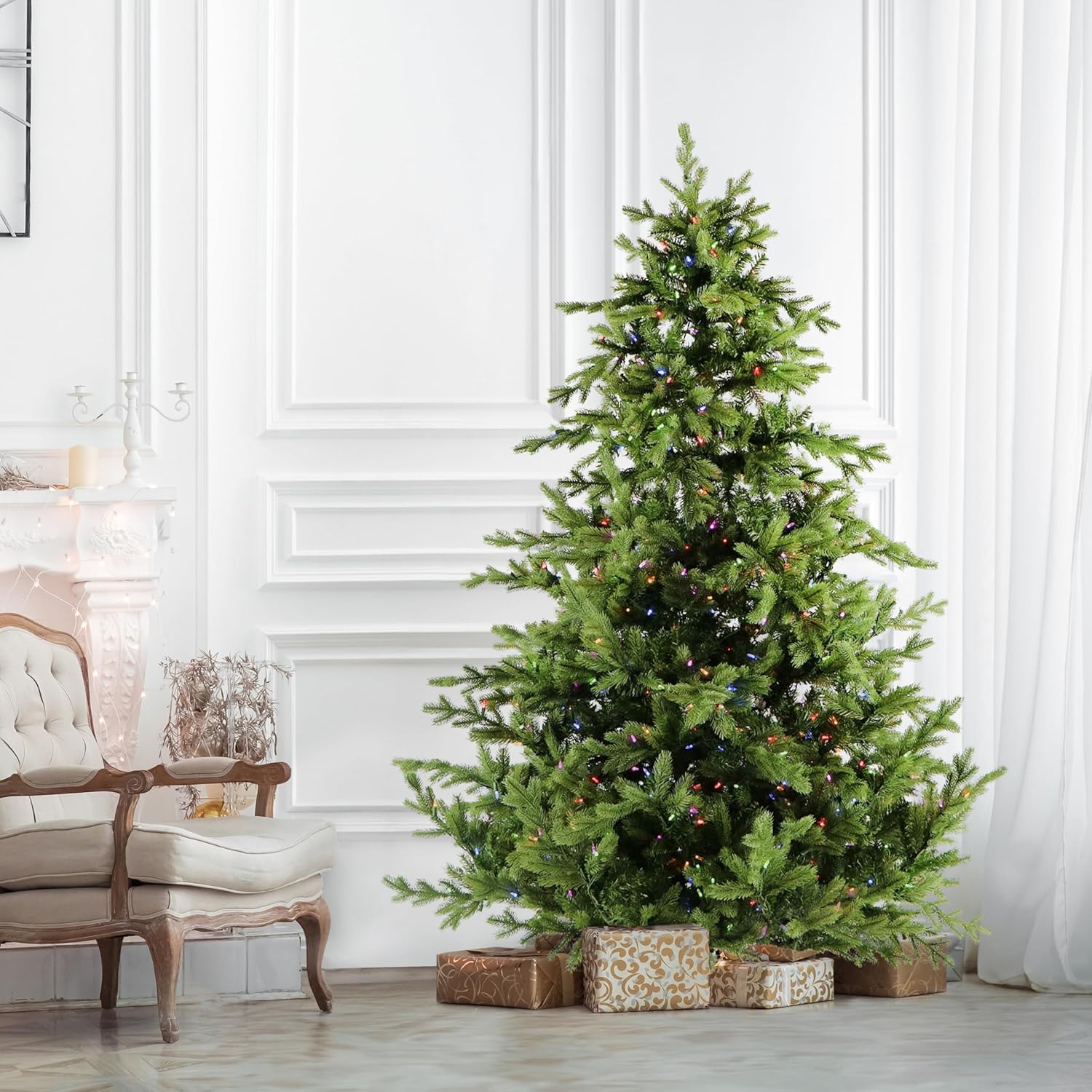 - Prelit: Prestrung with 900 dual multicolor and warm white LED lights with 8 different light functions to bring a festive glow to your home