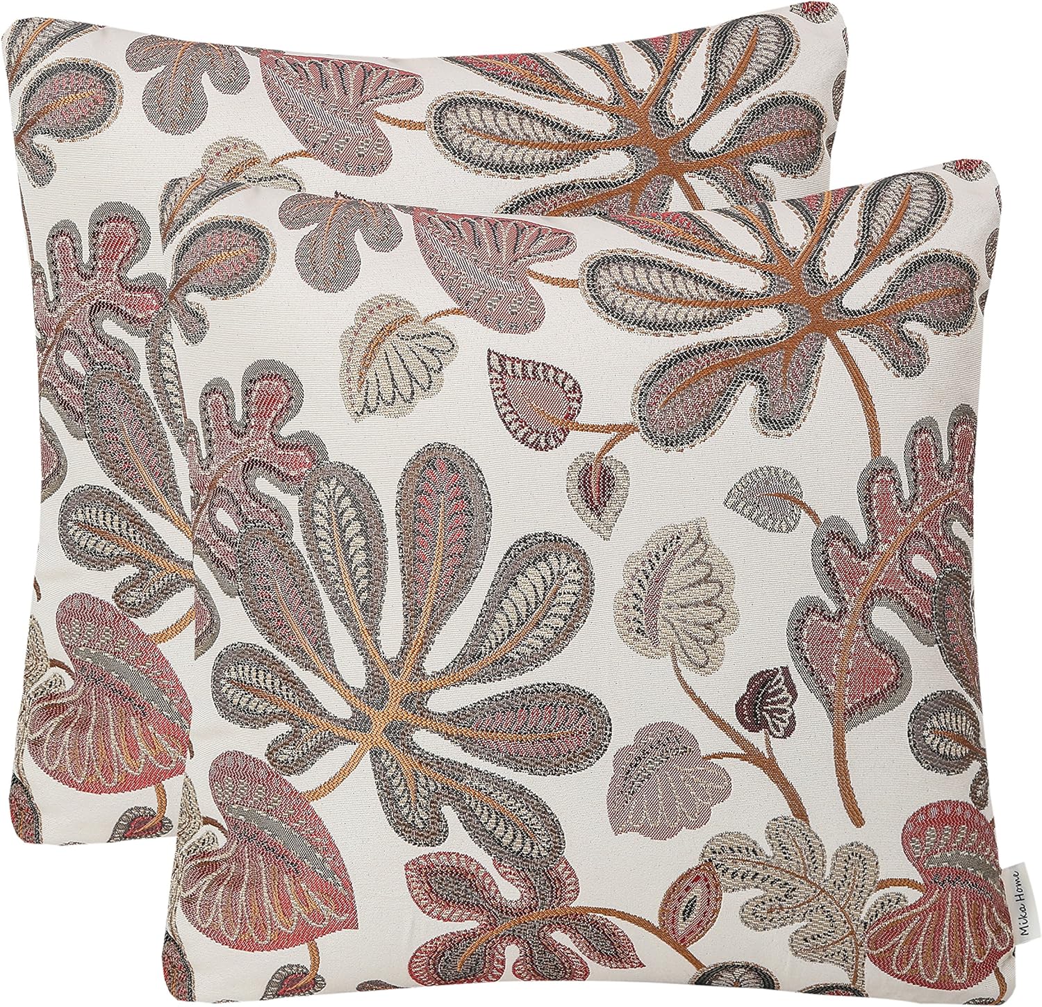 Set of 2 Jacquard Tropical Leaf Pattern Throw Pillow Covers Decorative Pillowcase 20X20 Inches,Coral Cream