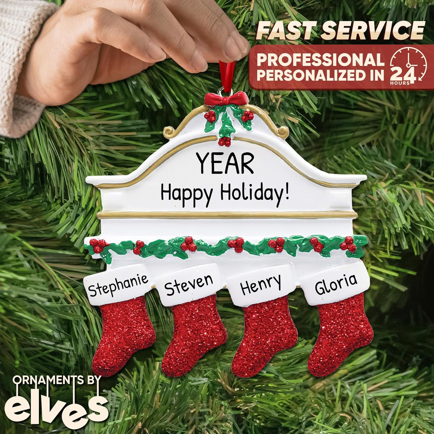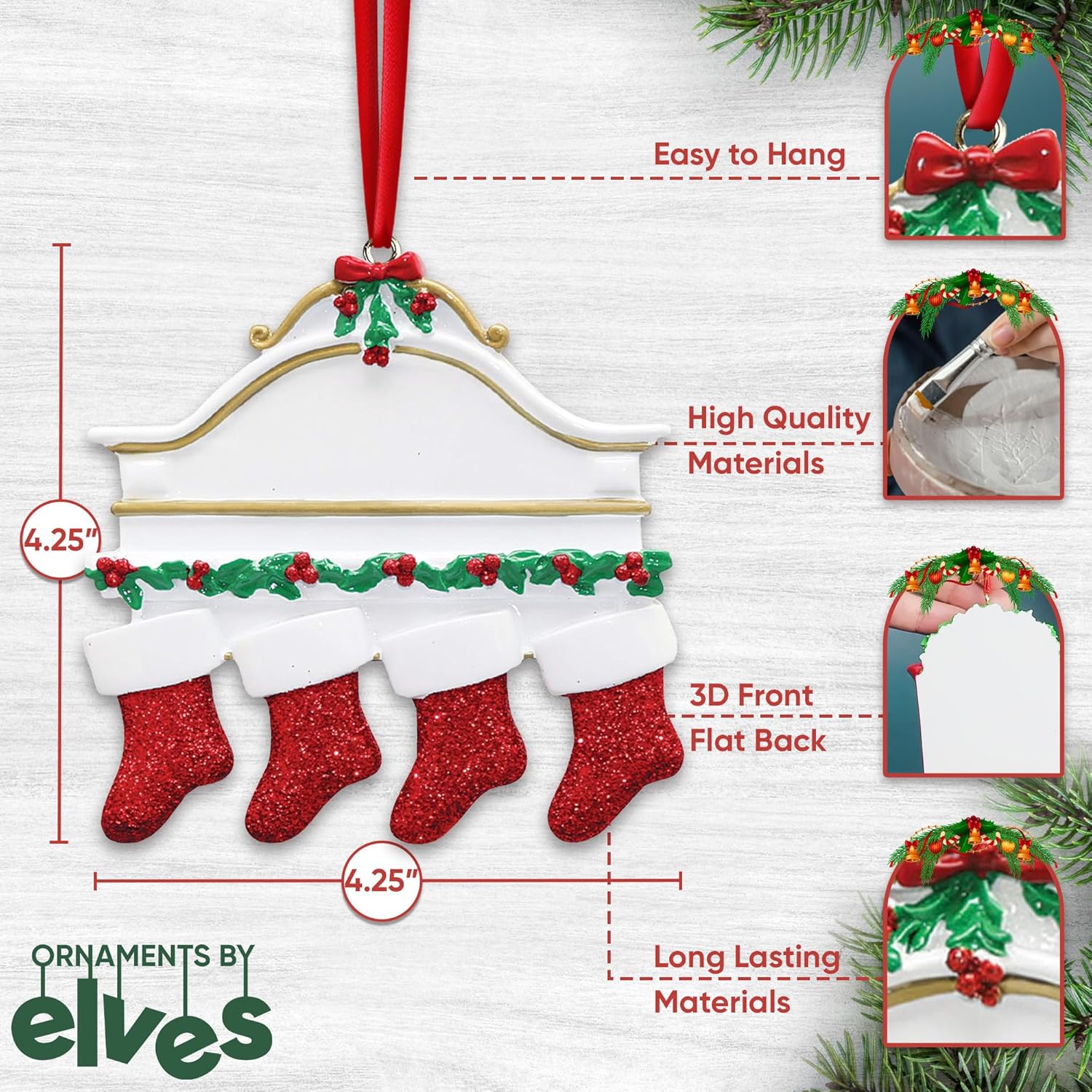3D White Mantle Family of 4 Christmas Ornament 2025 Personalized Family Christmas Ornaments 2025 | Garland Fireplace Personalized Tree Ornaments Customizable Gifts Red Stockings of Four Ornament