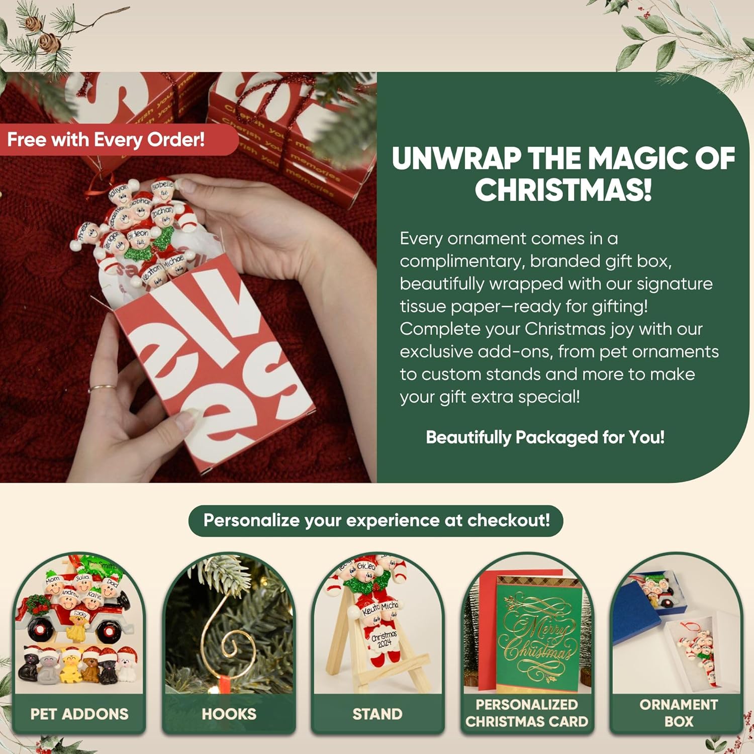 - 👪 Made for Every Home Our family ornaments personalized for seven are perfect for families with five children, blended households, or pet-inclusive homes. Choose from snowmen, stockings, or cozy holiday scenes that reflect the people—and pets—you love most.