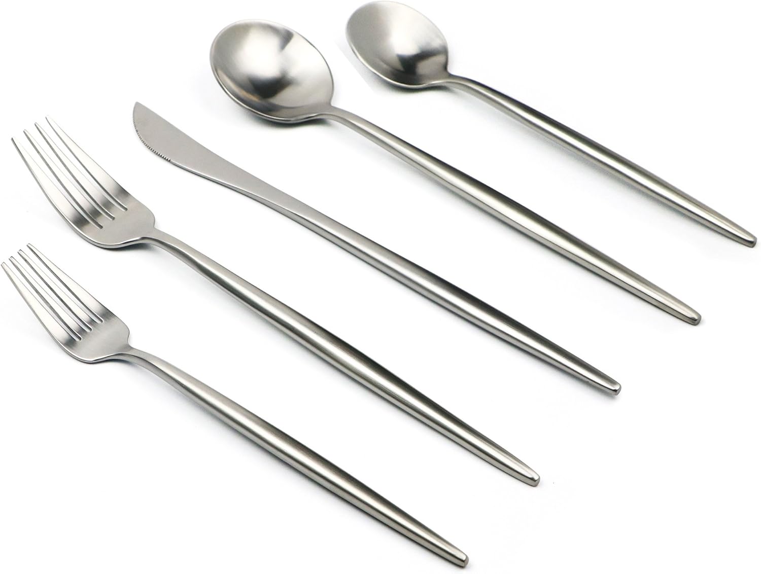 5-Pieces Luxury Silver 18/10 Stainless Steel Flatware Set, Matte Finish, Service for 1