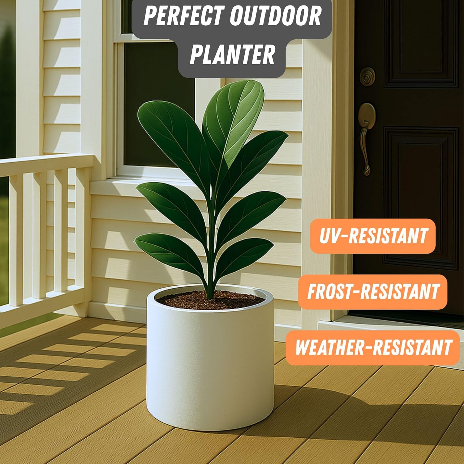Fox & Fern 8 Inch Plant Pot with Drainage Plug — Premium Lightweight Fiberstone Matte White Planter; Indoor & Outdoor Planter; 8 Inch Pots for Plants; Weather Resistant & UV Resistant