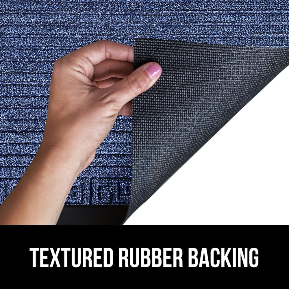 GORILLA GRIP 100% Waterproof All-Season WeatherMax Doormat, US Designed Natural Rubber, Stain and Fade Resistant, Low Profile Indoor Outdoor Door Mats, Easy Clean Patio Mat, 17x29, Navy Greek Keys