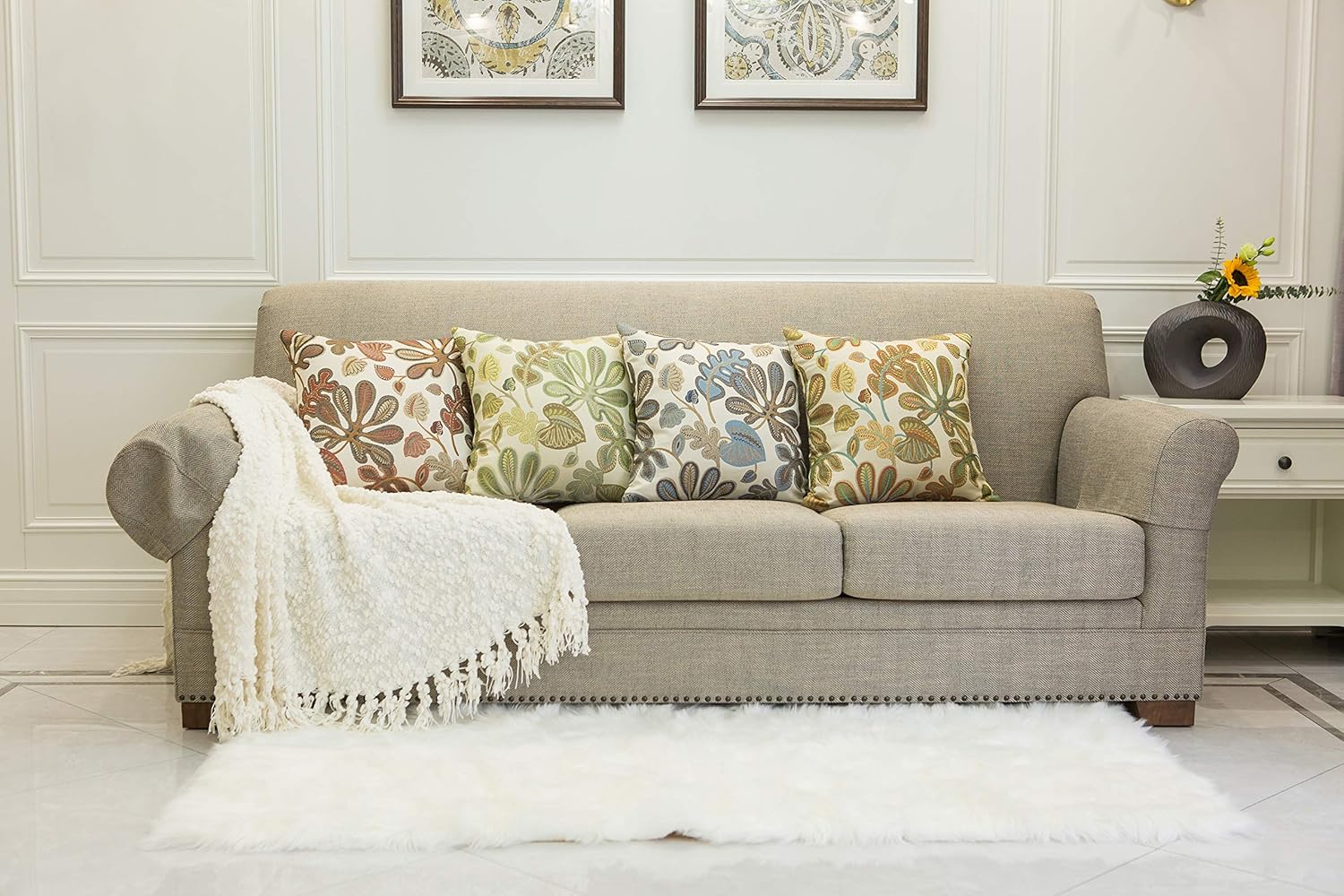 Set of 2 Jacquard Tropical Leaf Pattern Throw Pillow Covers Decorative Pillowcase 22X22 Inches,Teal Cream