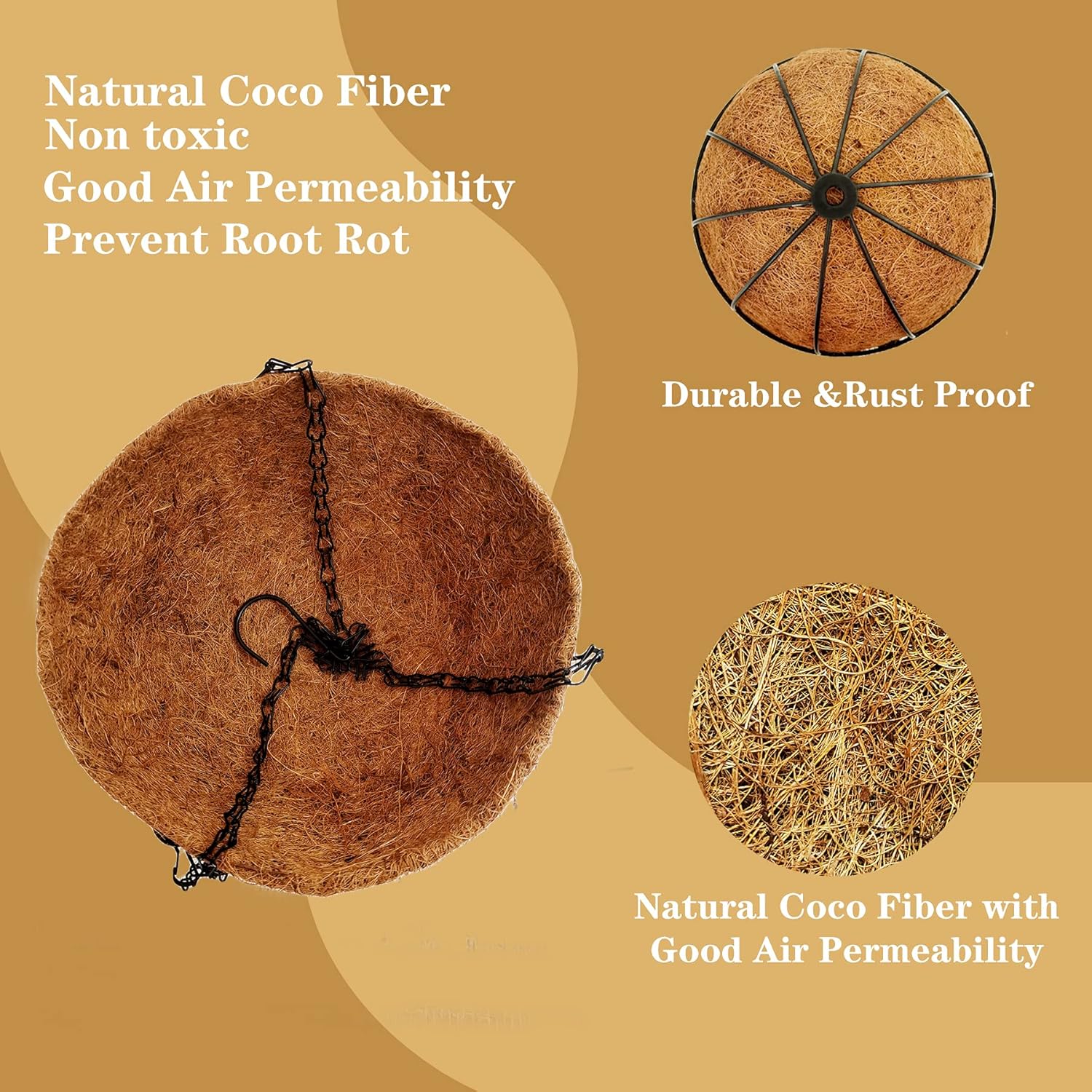 - π NATURAL MATERIAL AND GOOD CARING:with the material of natural coconut fiber,hanging pots liners feature a good air and water permeability so they can provide good care for your plants. and they are environment- fiendly with the features of non-toxic and tasteless ,so you don't need to worry that they will harm your health and your plants.