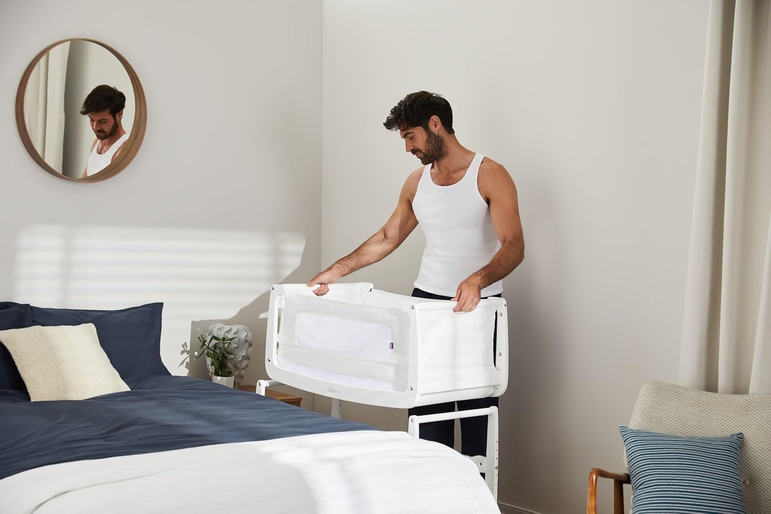 SnuzPod 4 Rocking Baby Bassinet Bedside Sleeper - Lightweight, Portable Bedside Bassinet, Lift Off Crib, Zip Down Wall, 3D Breathable Mattress, 6 Height Settings and Comfort Incline Mode, White