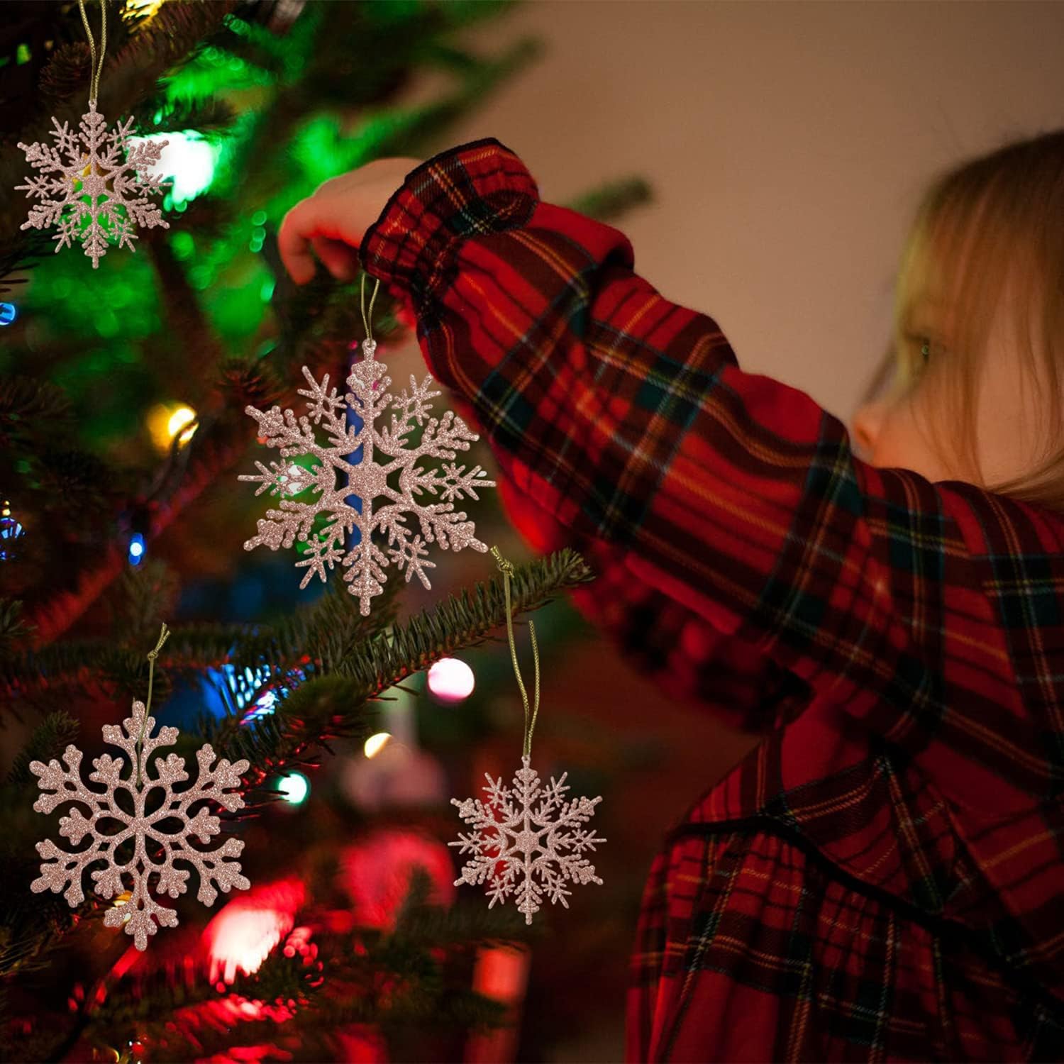 - CHRISTMAS TREE SNOWFLAKES: Featuring sparkly glitters on the surface, these rose gold snowflakes tree ornaments add much more sparkle to your Christmas tree decorations, various sizes give a nicer variety on the tree, just let it snow