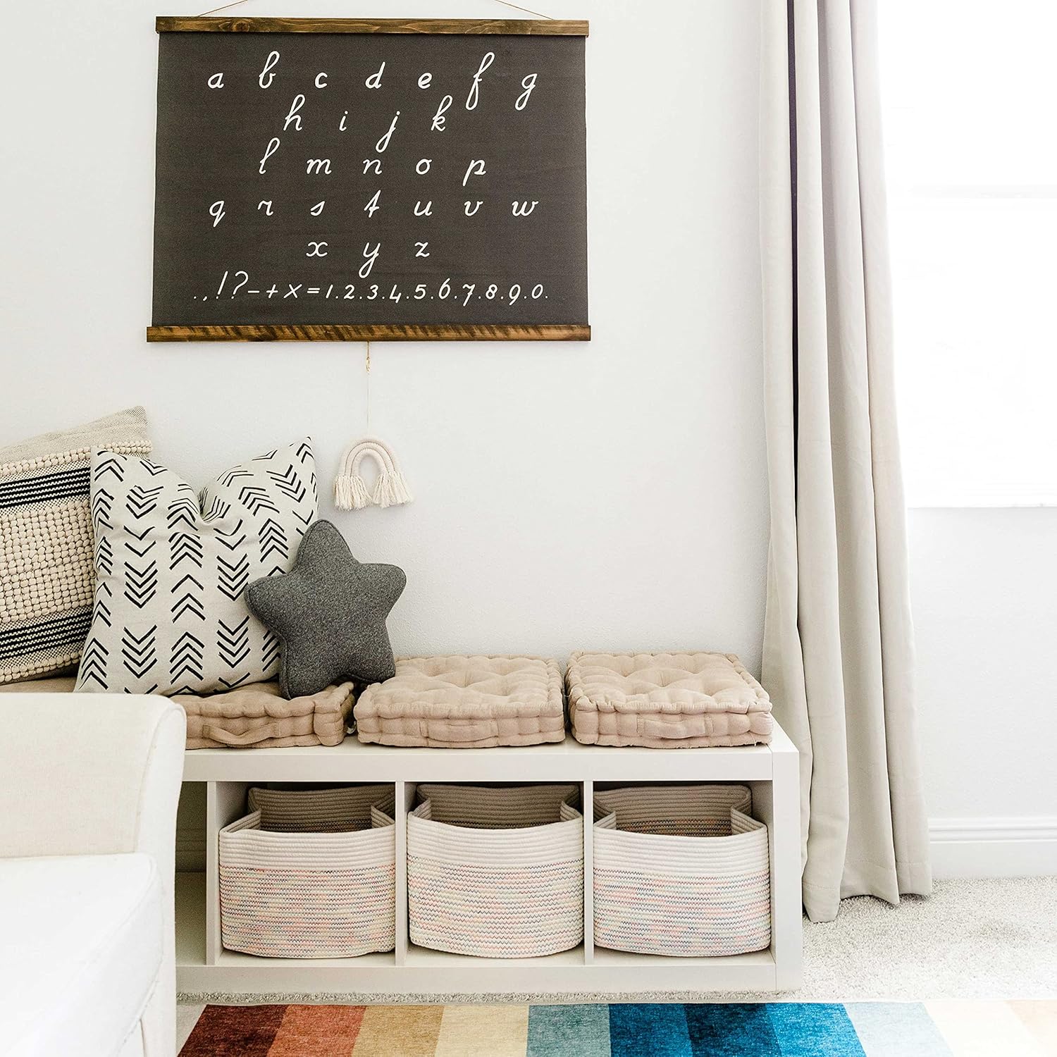 - Discrete, Built-In Carry Handles – These fabric rope baskets for storage also feature slim hand holds built right into the sides of each basket for a seamless look that’s also functional. Perfect for picking up toys or carrying items around the house.