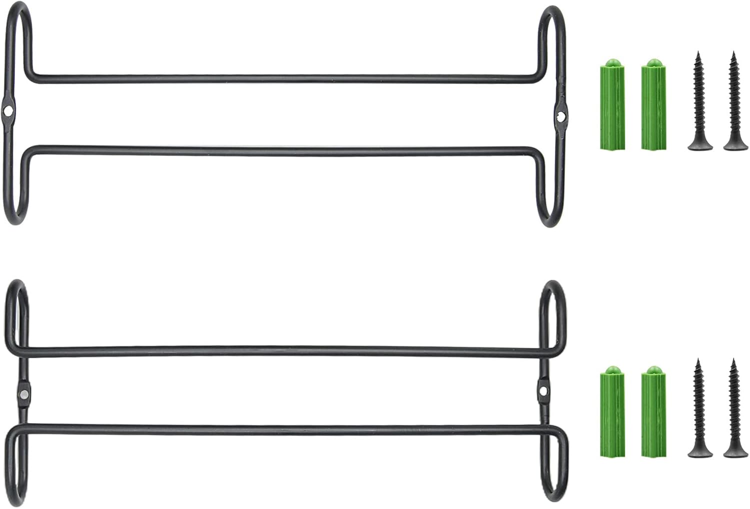 10 Inch Wine Glass Rack Under Cabinet Shelf Stemware Storage Hanging Hanger Organizer Glasses Holder with Drying Under Counter Metal for Kitchen and Bar Set of 2 Black