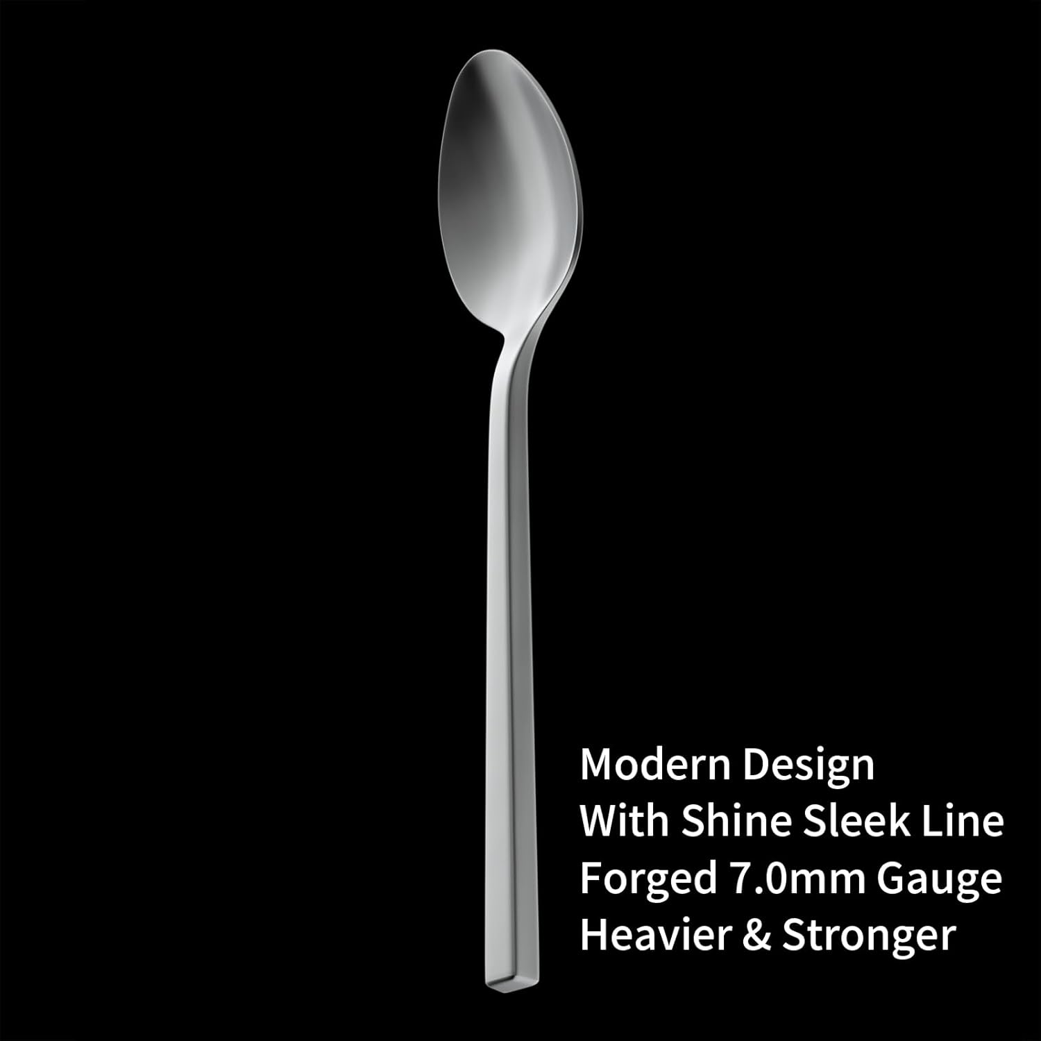 - DESIGN AND APPEARANCE: Classic square handle shape with satin finish, natural and elegant design.Smooth and silk surface without grain, easy to clean and care in daily use. Crafted forged process, strong and durable,so that the flatware set has a thicker texture