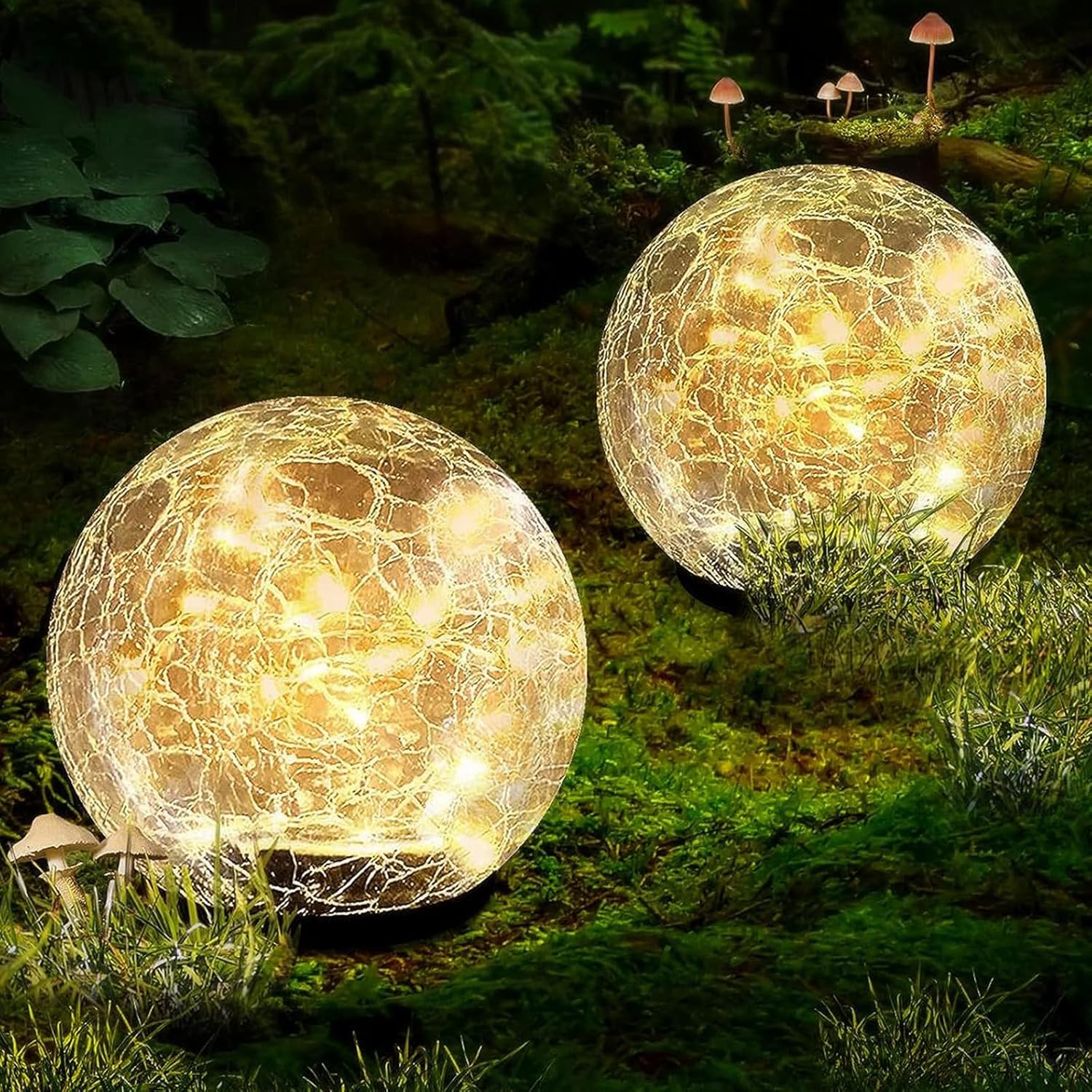 Garden Solar Ball Lights Outdoor Waterproof, 80 LED Cracked Glass Globe Solar Power Ground Lights for Path Yard Patio Lawn, Christmas Decoration Landscape Warm White(2 Pack 5.9'')