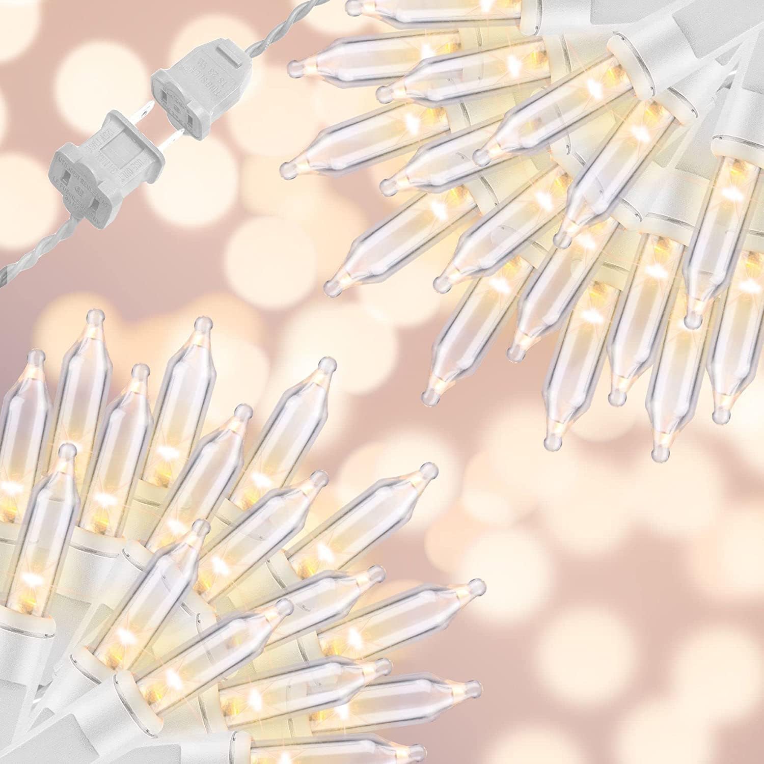 - Safty and Easily: High quality UL certified products ensure the safety of you and your family, Decorate with 300LIGHTS(2*150L) clear incandescent mini lights with white wire will give a soft festive feel to your Christmas.