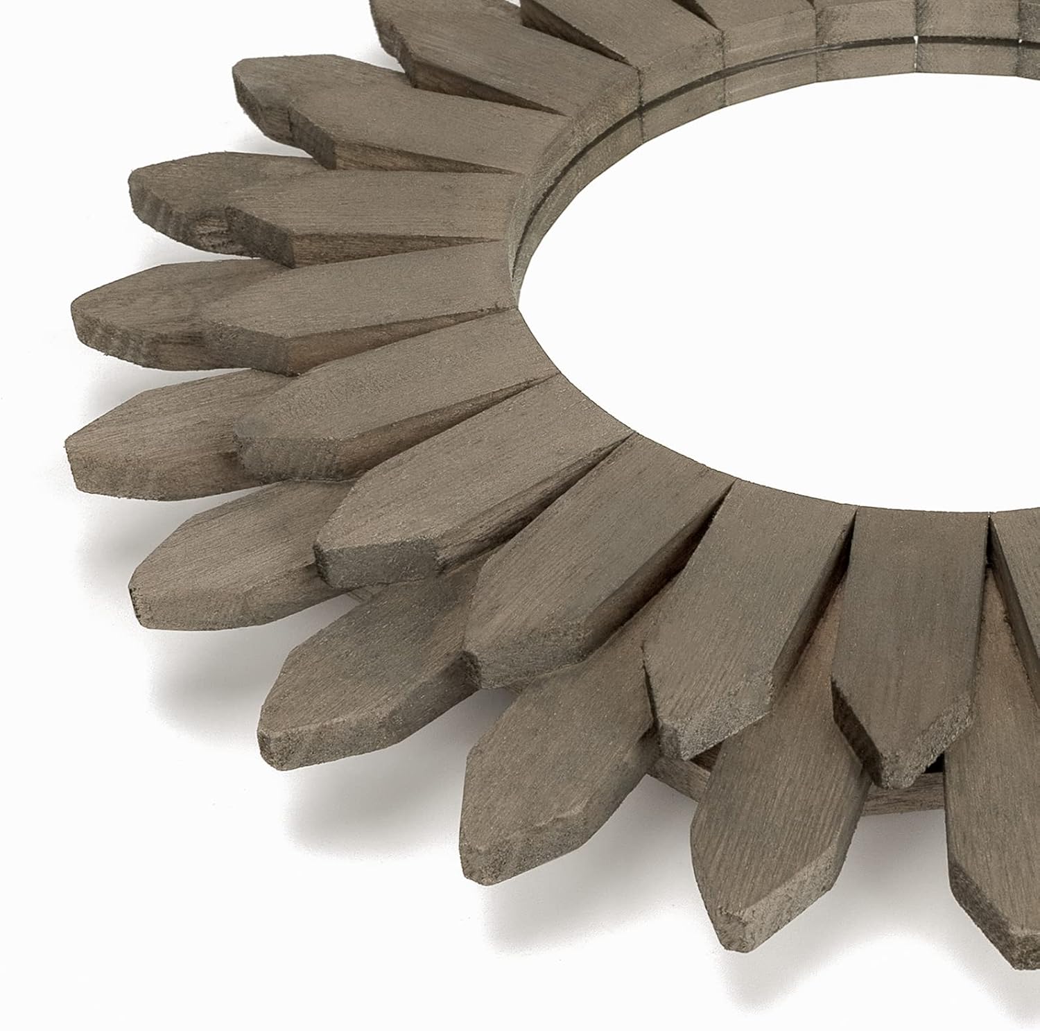 Honiway Farmhouse Wall Decor Mirror 12 inch Sunburst Boho Wood Mirror Rustic Home Decor Room Decoration for Bedroom Living Room Weathered Grey