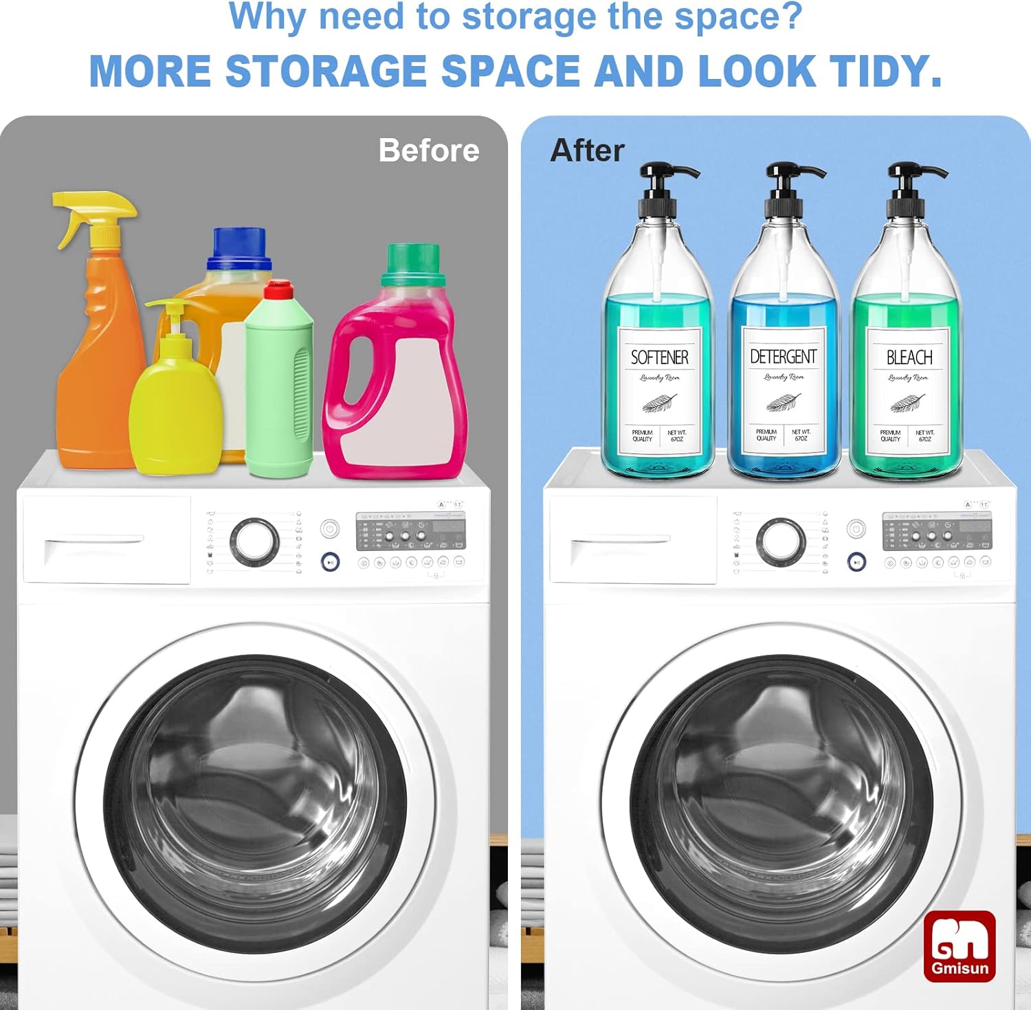- 【Why Need Laundry Detergent Dispenser Set of 3?】 Most people need to use 3 or more kinds of detergents in the laundry room, detergent, softener, bleach, baby detergent, etc, so 3 Pieces laundry soap dispenser is the good choice for you to tidy up the laundry room, dispense all the detergent into the same decorative dispenser, easy to use and make the laundry room look organized and pretty.