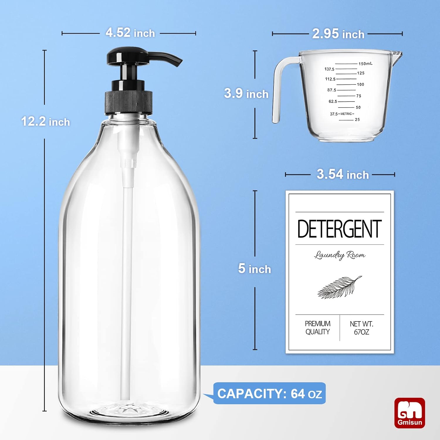 - 【 Sturdy Material】 We upgraded the capacity of top and container. Our upgraded laundry detergent container is thicker than others' ordinary, made of reliable plastic, so it isn't to heavy when filled with liquid, no easy to leave dents on the surface. And the top is bigger than other’s, reduce the time of pressing, your arm will not got tired. Our laundry containers for detergent are designed for years of use.