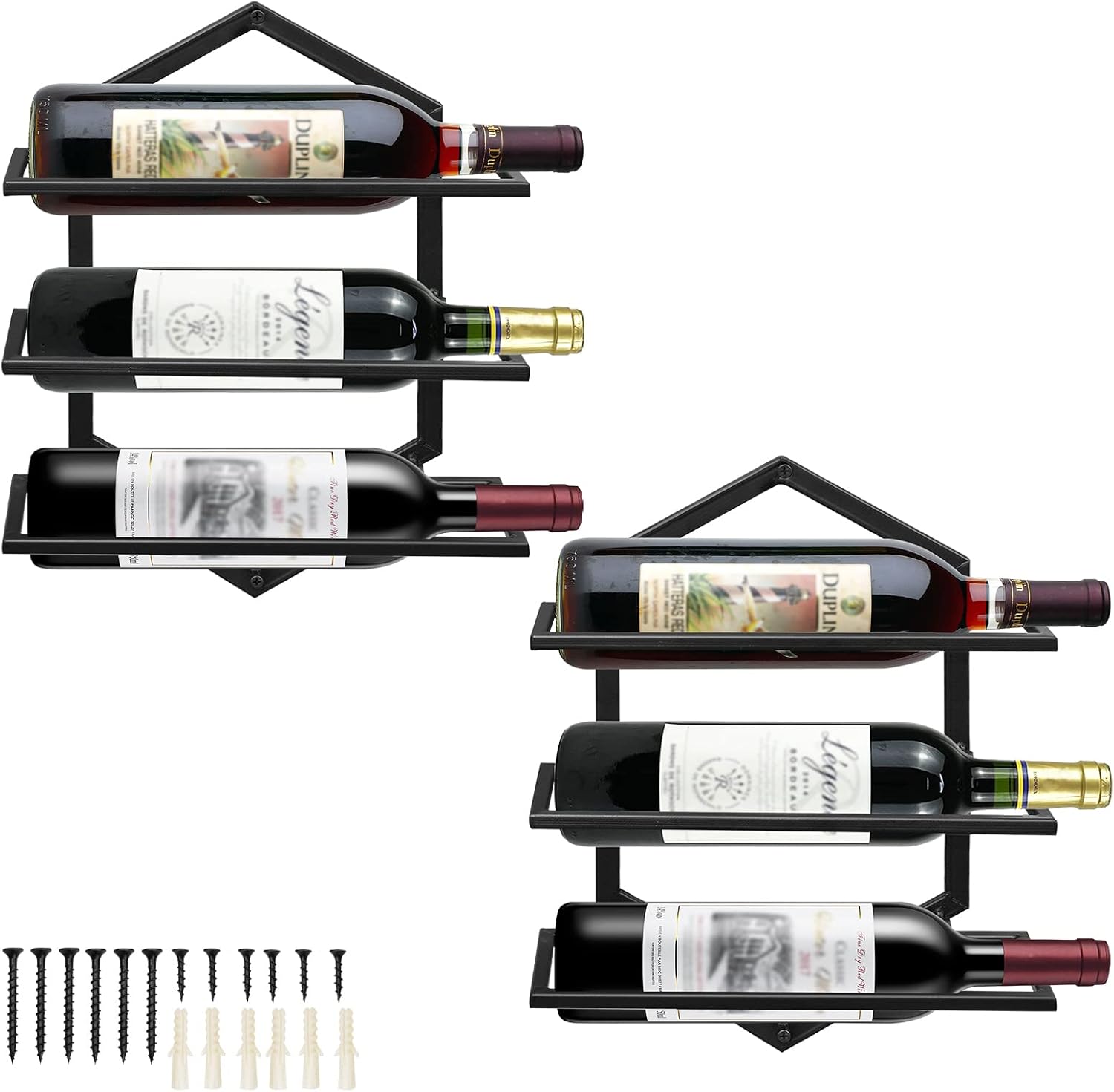 2Pcs Wall Mounted Wine Stemware Rack, Metal Hanging Wine Glass Display Holde Holds 3 Bottles, Elegant Storage for Kitchen Dining Room Bar Wine Cellar