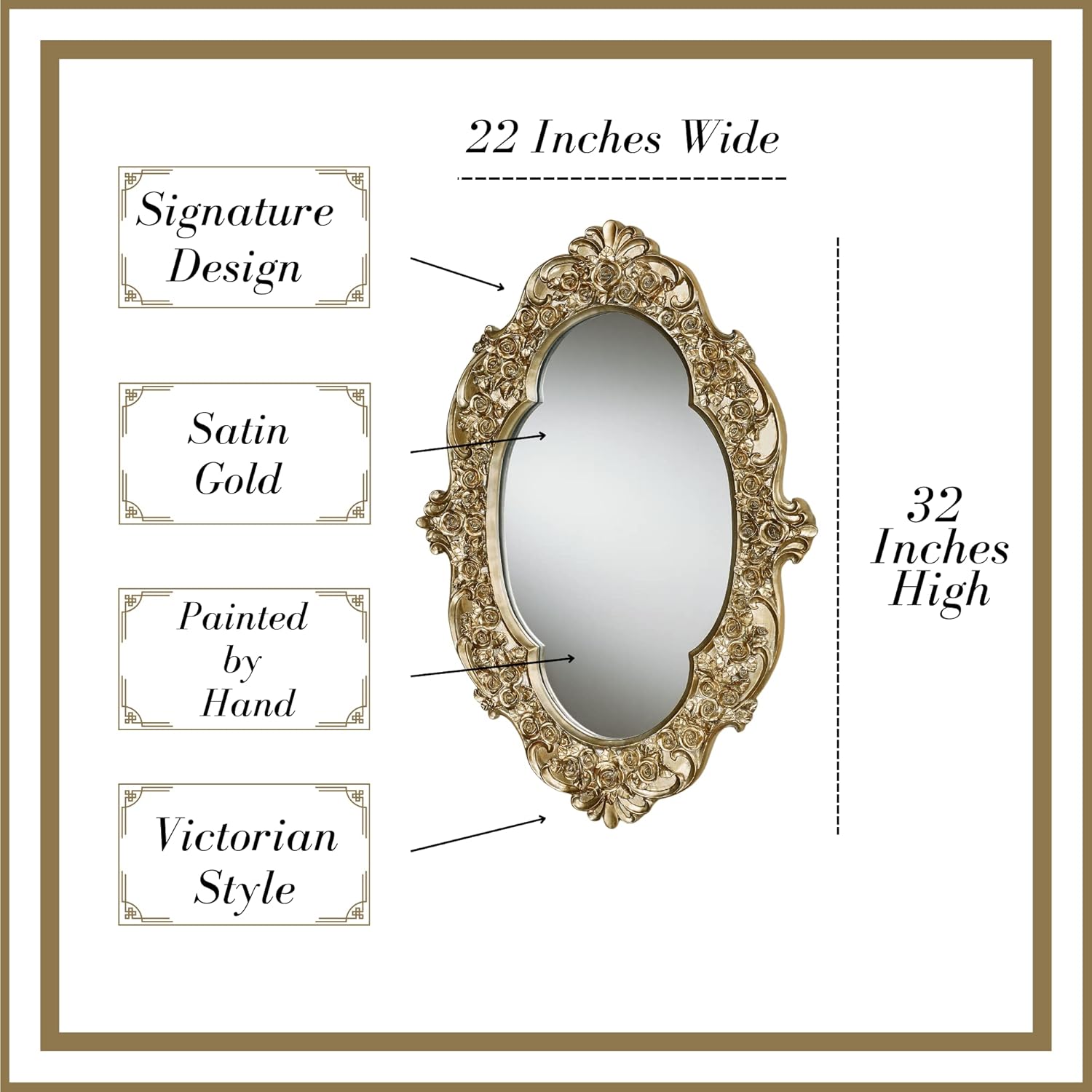Touch of Class Victoria Rose Oval Vintage Wall Mirror | Victorian Style Decor for Bedroom, Living Room, Bathroom Vanity | Ornate Gold Framed