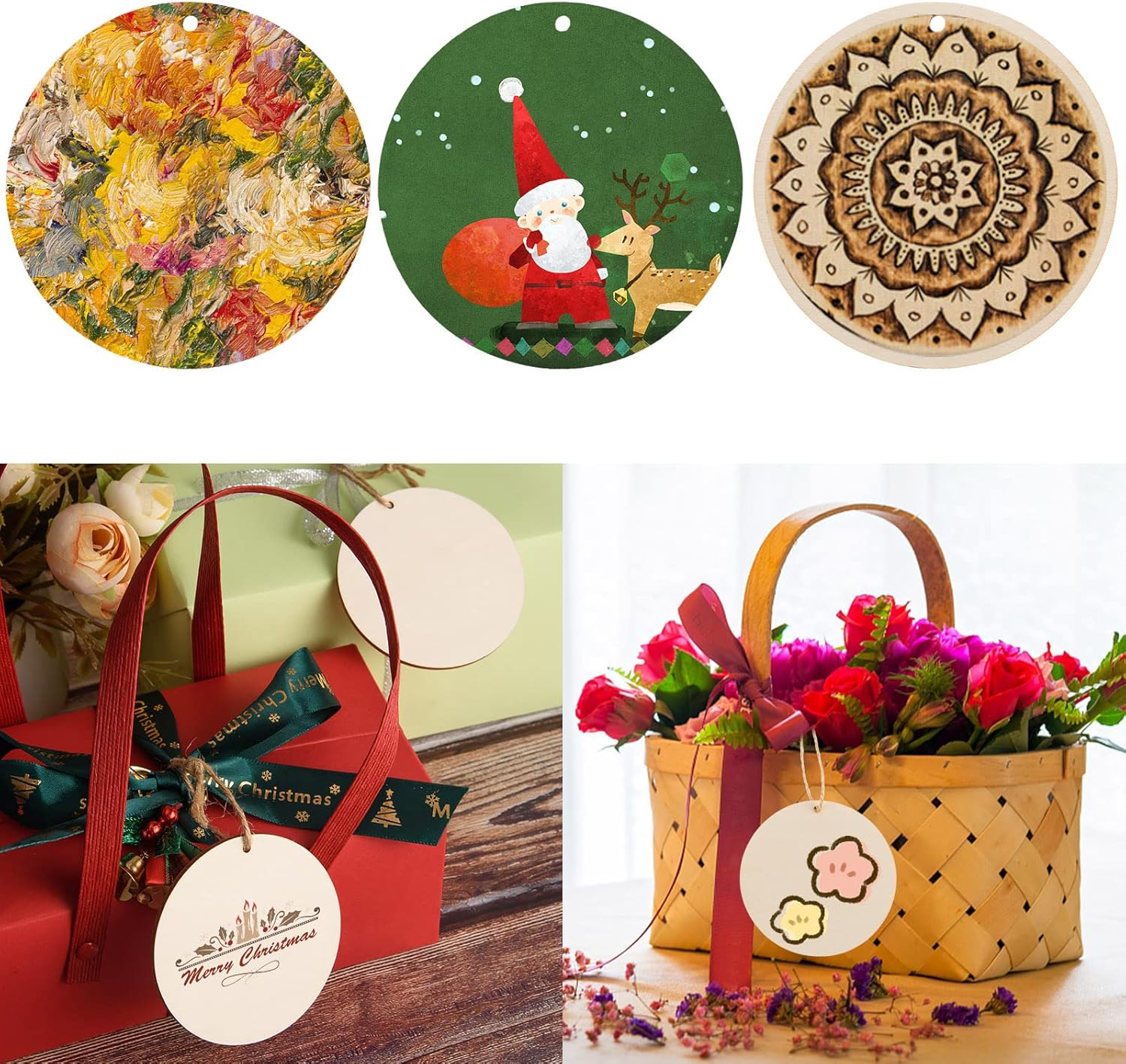 - Fun to DIY: the round wooden tags are designed with a blank smooth surface, you and your children can stain or paint on the wooden disc, make different styles of handmade tags, present tags or holiday decorations for your family members and friends.