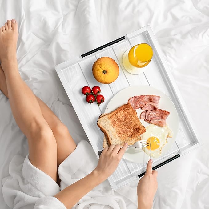 - MULTIPURPOSE SERVING TRAY β Use this versatile large wood serving tray in the comfort of your bedroom, study, or Couch Tray or Farmhouse tray or anywhere you like to enjoy a nice meal! Our kitchen wooden serving tray can also be used as a kitchen organizer to hold cutlery or other items, as a remote tray, a laptop tray for bed while working from home, or as a coffee tray for coffee bar