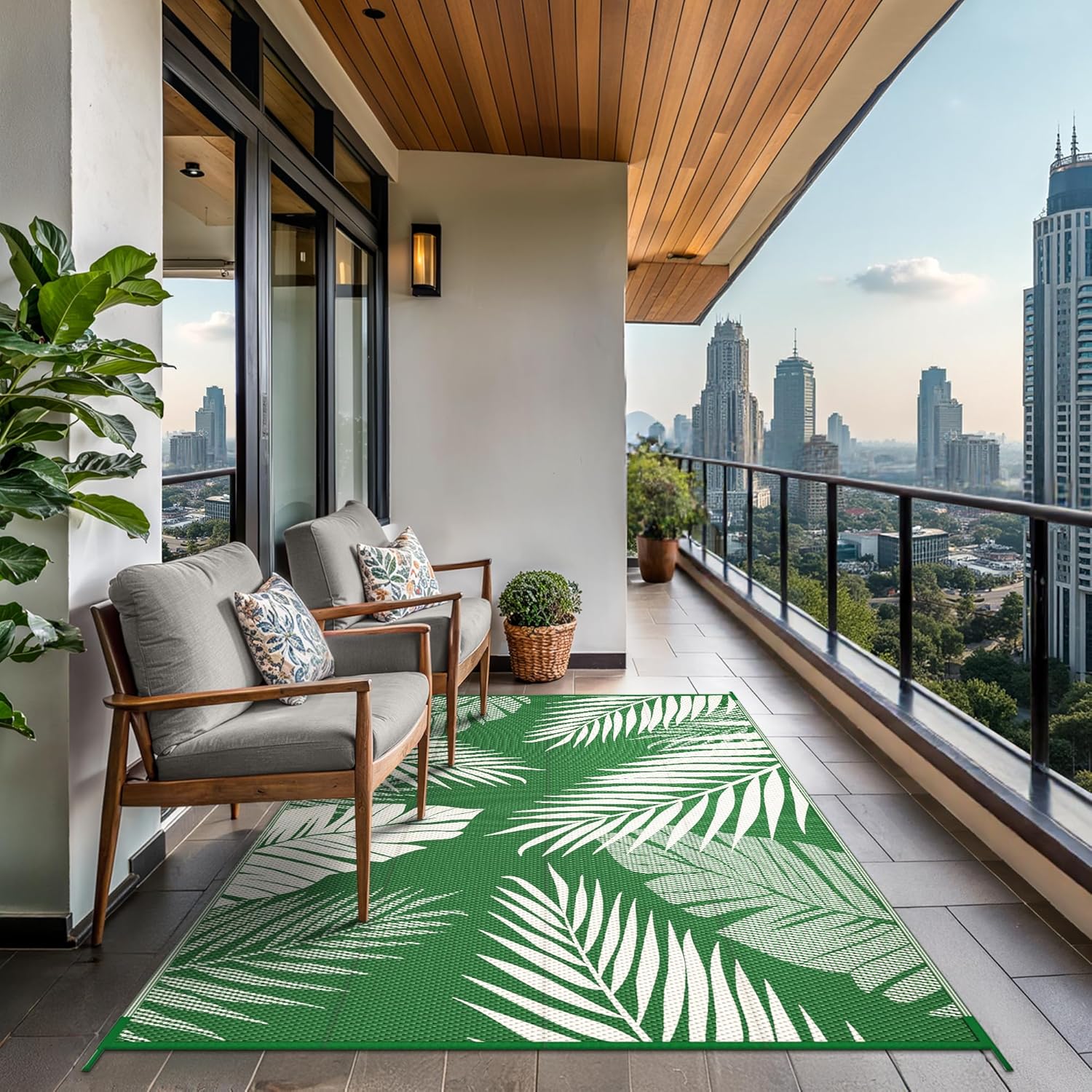 - Palm Leaf Design & Double-Sided Pattern: GENIMO reversible fall outdoor rug is designed with a double-sided pattern, completing the unique layout of multiple palm leaves. The 2 shades of green and white achieve the ultimate fusion. Either side can blend perfectly with nature and look very full and comfortable, making it a versatile piece for fall decor