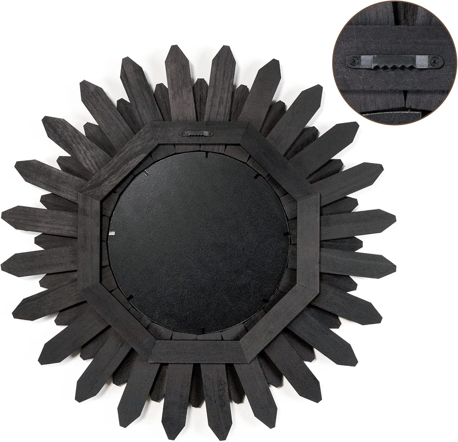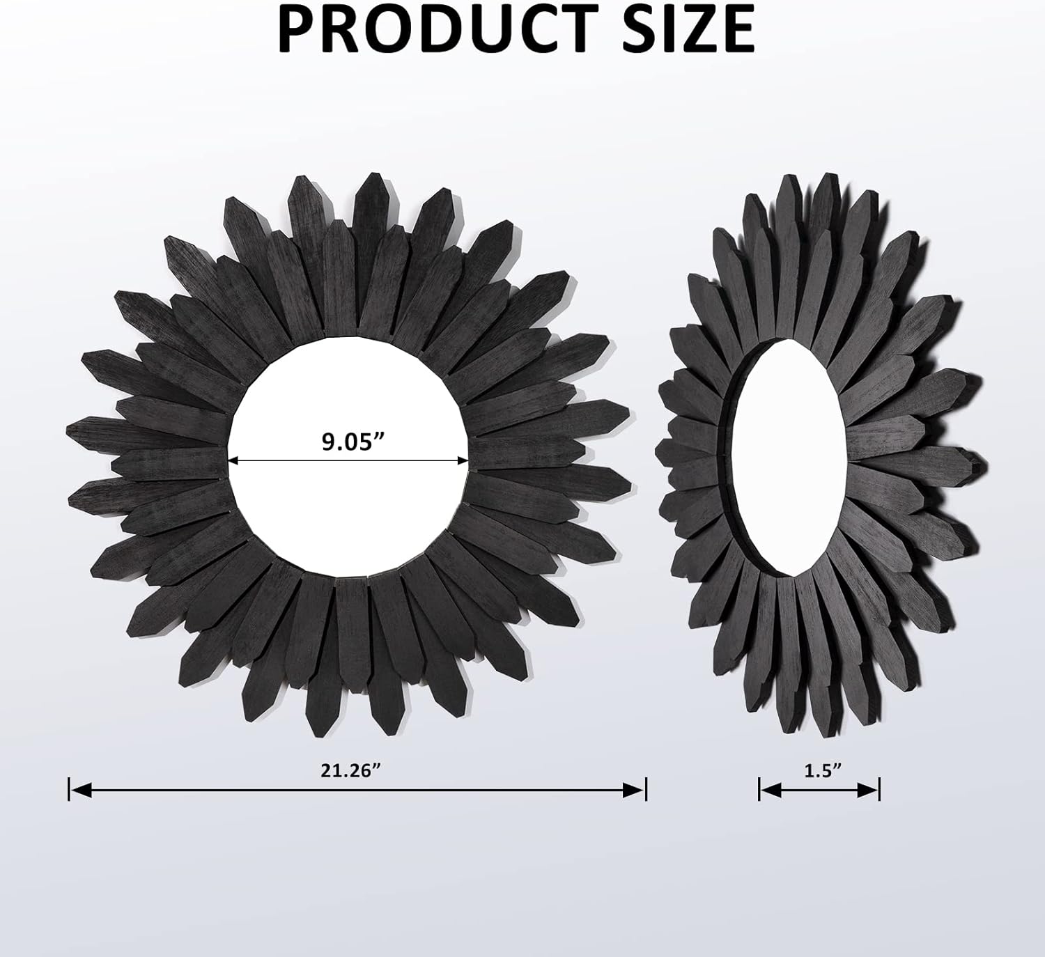 Honiway 21 inch Black Wall Decor Vintage Mirror, Boho Style, Wooden Frame, Easy to Hang, Ideal Gift