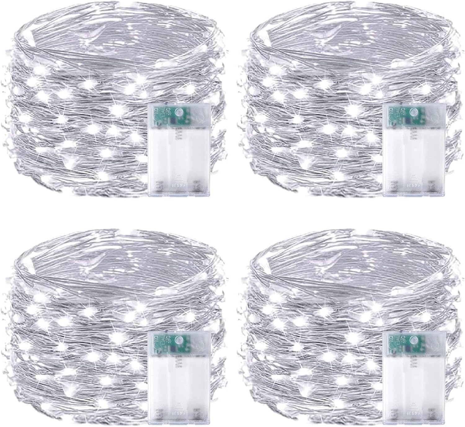 - Ultra-Bright and Durable Battery Fairy Lights: Designed with ultra-bright LEDs and durable silver wire, these battery-operated lights are built to last and make an excellent choice for decorating bedrooms, centerpieces, balconies, decks, and porches. Each set includes 4 strands of lights, each 16ft long with 50 LEDs, powered by 3 AA batteries (not included)