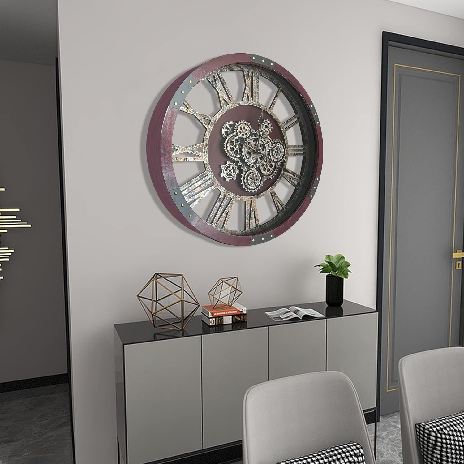 - 🧭【Real Moving Gears Wall Clock】The rustic wall clock is design with multi-real moving gears, put battery in, various gears start working, makes a subtle relaxing sound and makes a living element in the environment in where it is placed, vintage and magical, catch all eyes of visits.