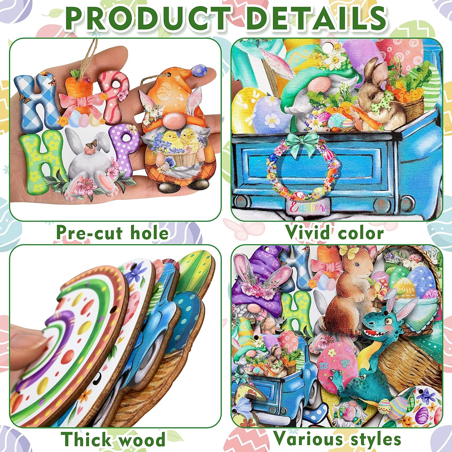 24 Wooden Hanging Ornaments, Hanging Decor for Tree, Happy Easter Egg Gnome Bunny Wooden Craft Spring Party Supplies Home Decor