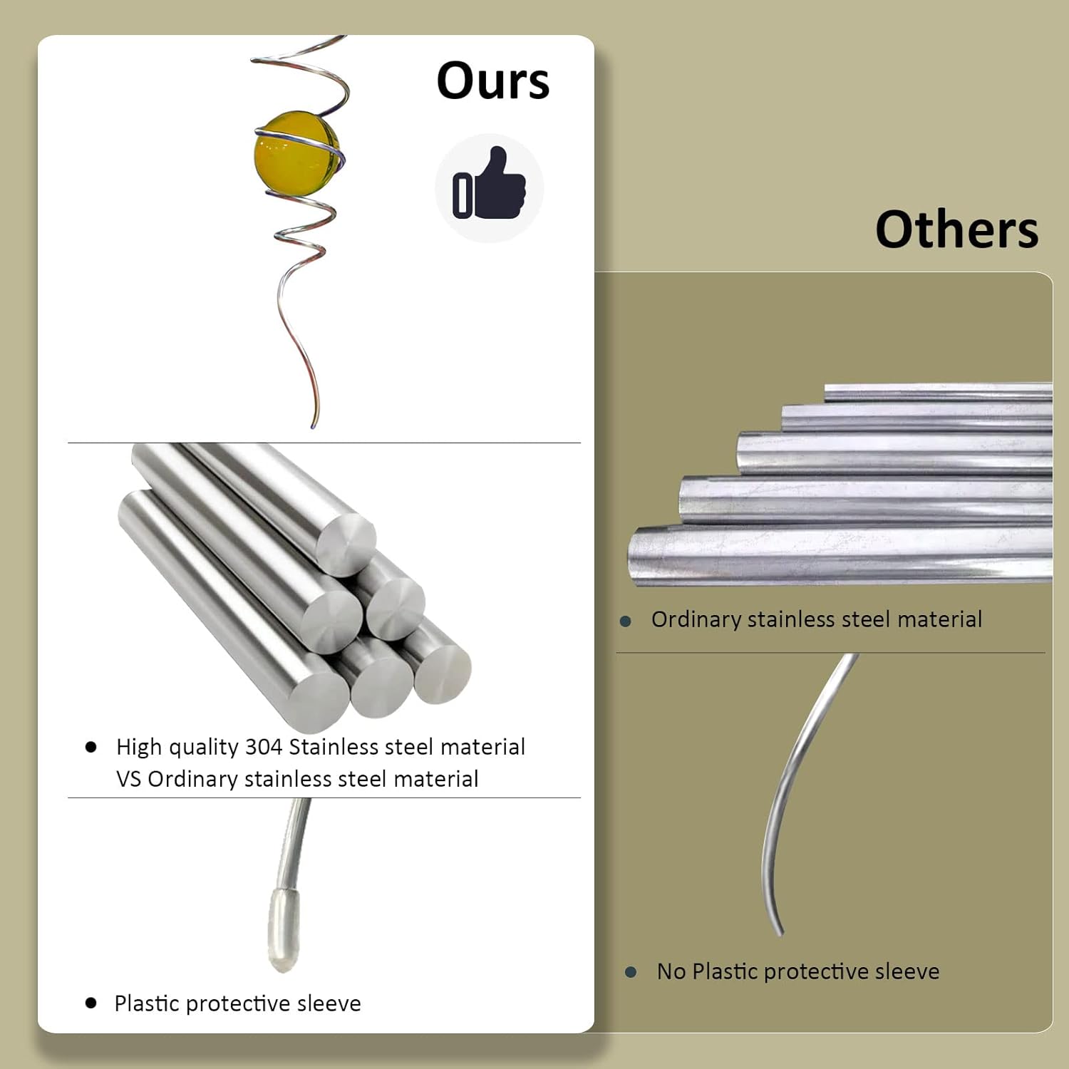 - 【High Quality】11inch height spiral tail made of #304 stainless steel wire,the 2inch colored ball made of pure solid color glass material,have good weather resistant,no fading under sunshine.Better quality than iron material with nickle plating and painting color glass ball in the market.