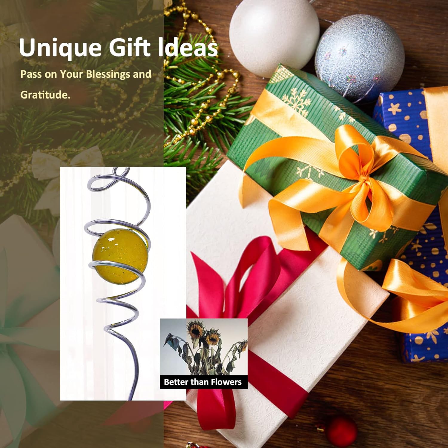 - 【Unique Spiral Design】The gazing ball spiral tail is an unique hanging ornament ,Also it can help to stabilize 3D wind spinners or yard decor from swing when it rotate.When the spiral tail rotates to the left, the glass ball seems to move upwards,when the spiral tail rotates to the right, the glass ball seems to moves downward,the glass ball seems to like floating and dancing in air, presenting a magical optical illusion!