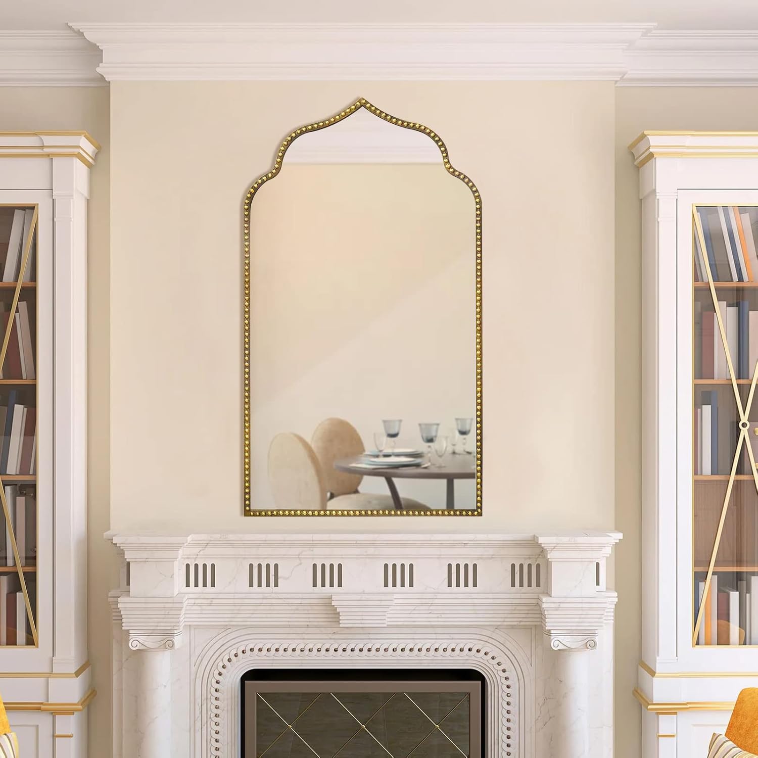 - Unique Design: Wall-mounted mirror features a Moroccan-inspired arch. Metal beaded frame make it a focal point of elegance and sophistication in any room.