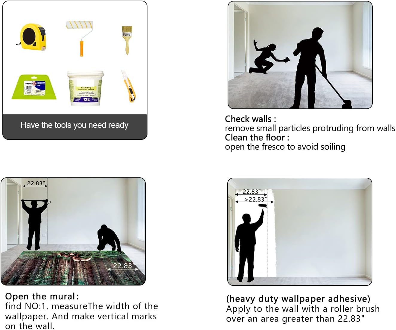 - This mural is It's not Peel and Stick . Additional Purchase required ( thick wallpaper adhesive ) please Check if is the product you need . thanks.