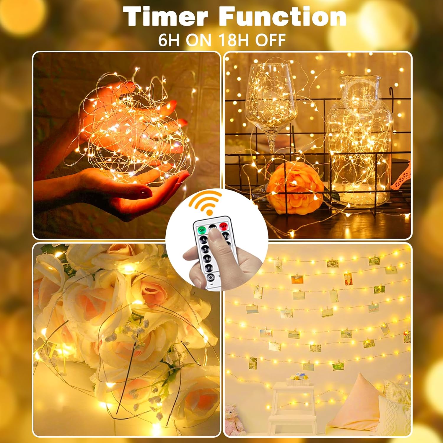 - Widely Application For Occasion Use: The fairy lights with remote perfect for Bedroom,Christmas,holiday, Halloween Parties, wedding, garden, patio,home and create a warm, happy, romantic atmosphere. With light weight and small size, it is portable and convenient for any romantic trip or camping. When use outside, please protect the battery case from water or rain