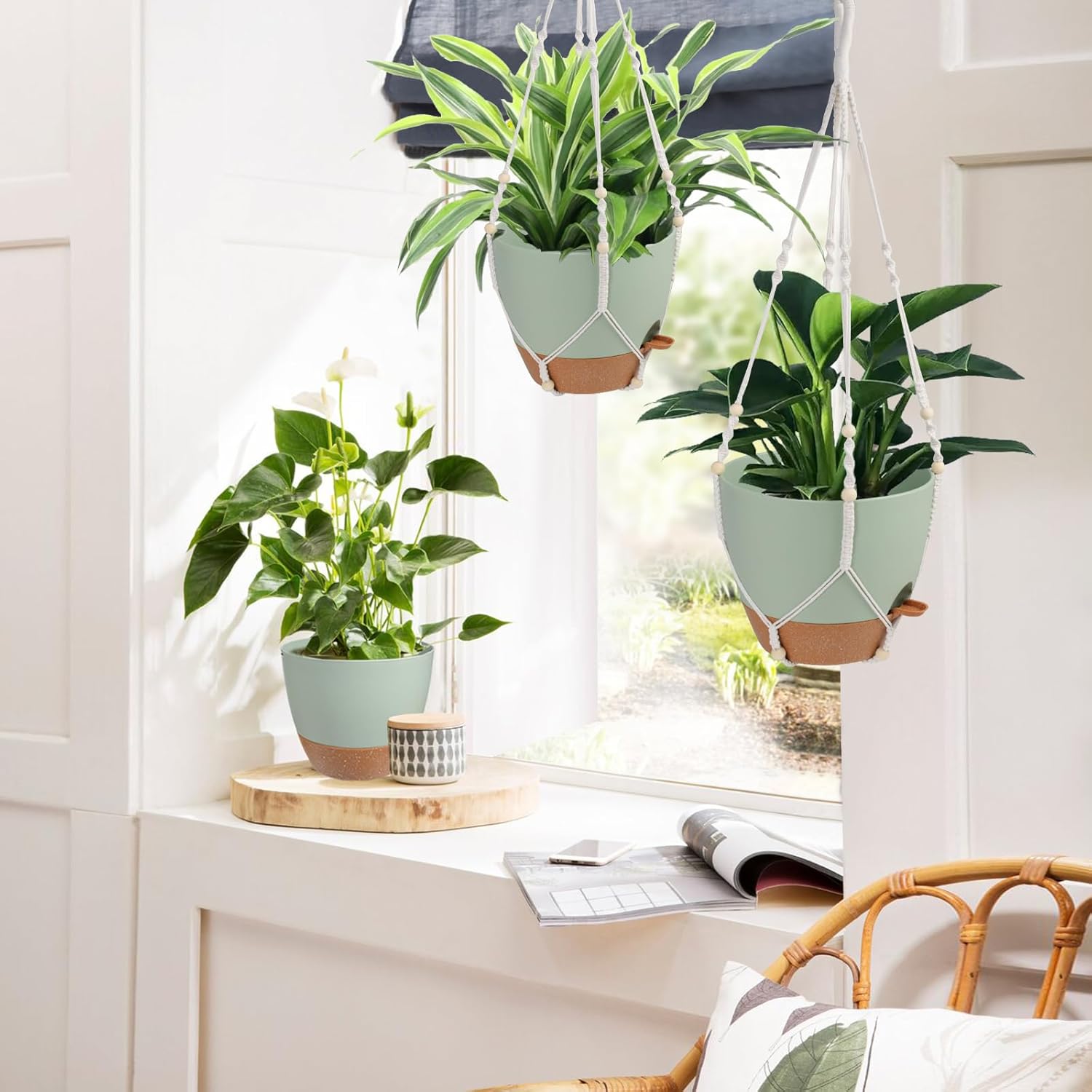 - Versatile Decor - These durable macrame plant hangers are ready to hang on your ceiling, porch, curtain rods, and patio doors. They're perfect for decorating living rooms, bedrooms, patio, balcony, garden and other places. Our plant holders indoor hanging is ideal for indoor and outdoor use.