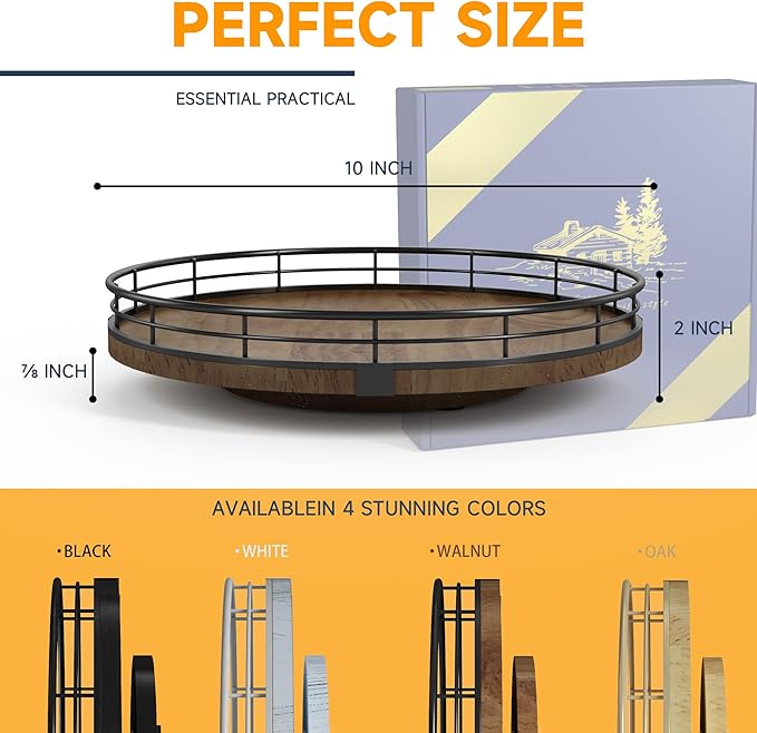 Farmhouse Oak 10" Lazy Susan Turntable Organizer for Cabinet, Round Wooden Lazy Susan Organization and Storage for Dining Table, Pantry, Kitchen, Countertop, Cupboard,Home Decor, Walnut Wood
