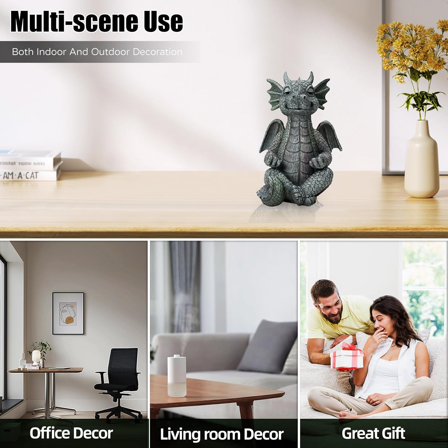 - 【Statue Size】The resin meditation dragon sculpture size is about 4.33 x 3.93 x 6.29 inches, perfect decoration for outdoor and indoor home, making your home and garden look more lively.