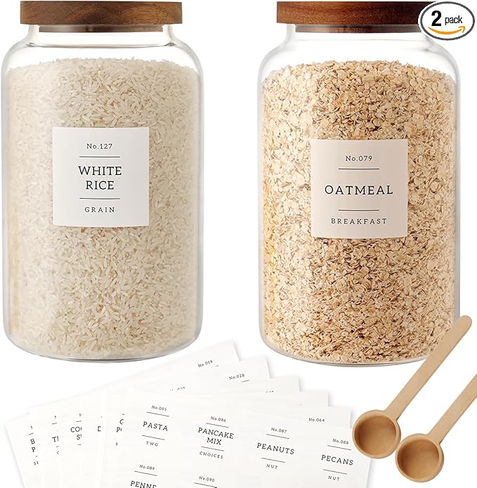 2 PCS Large Glass Jar with Airtight Lid, Glass Food Storage Jars for Tea,Spice,Cereal, Egg,Flour,Coffee and More(98 FL OZ/2800 ml)