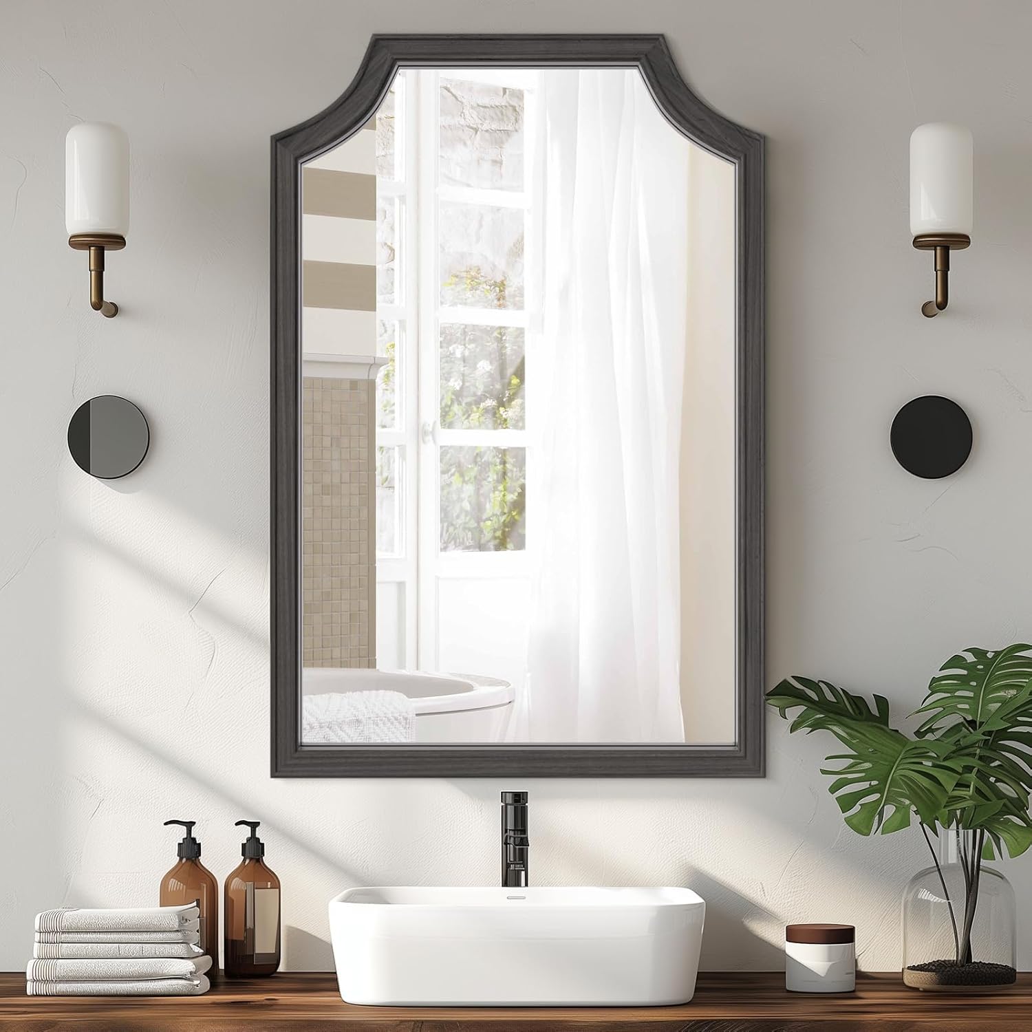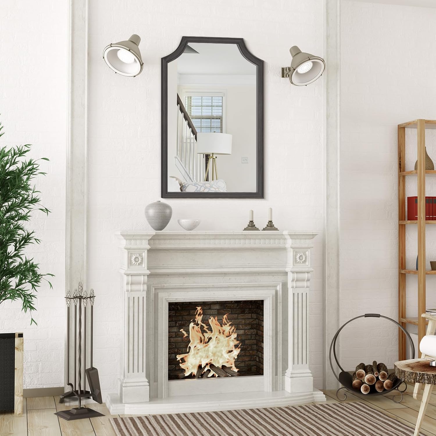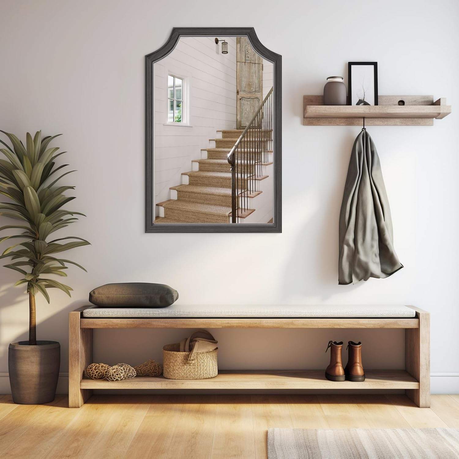 WallBeyond Scalloped Wood Mirror for Small Bathroom Vanity 20x30 Inch Rectangle Wall Mirror Decor for Hallway Bedroom Living Room Home (Black)
