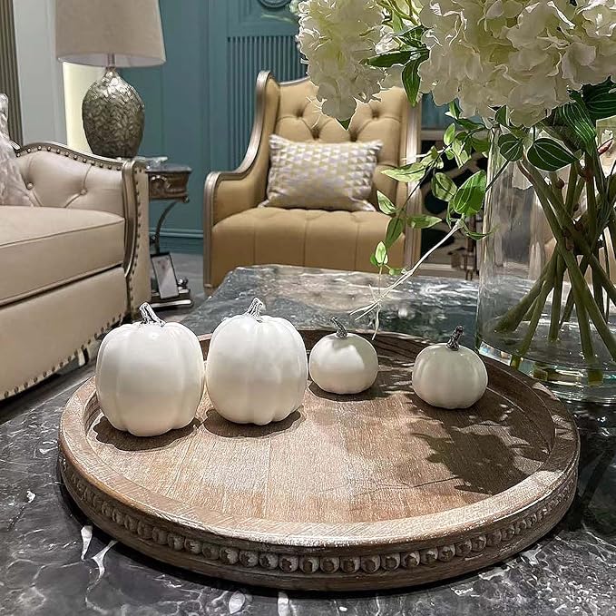 - [Unique Wood Grain]: Our round wood tray is made of premium natural pine wood,both durable sturdy and super lightweight,hard-wearing and serviceable for a long period to use. The wood trays home decor that come to you are unique.