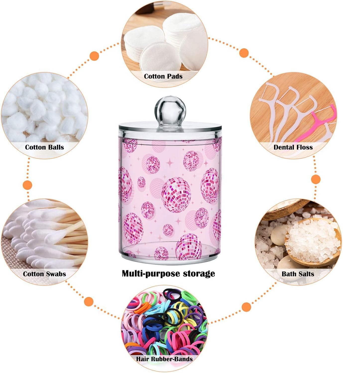 2 Pack Qtip Holder Organizer Dispenser Disco Balls Pink Bathroom Storage Canister Cotton Ball Holder Container for Cotton Pads/Swabs/Floss