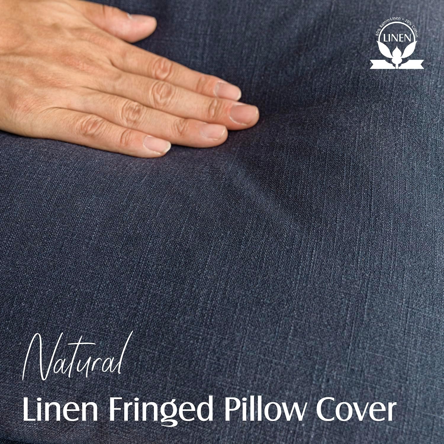 Foindtower Set of 2 Decorative Linen Fringe Throw Pillow Covers Cozy Farmhouse Boho Cushion Cover with Tassels Soft Accent Pillowcase for Couch Sofa Bed Living Room Home Decor 20×20 Inch Navy Blue