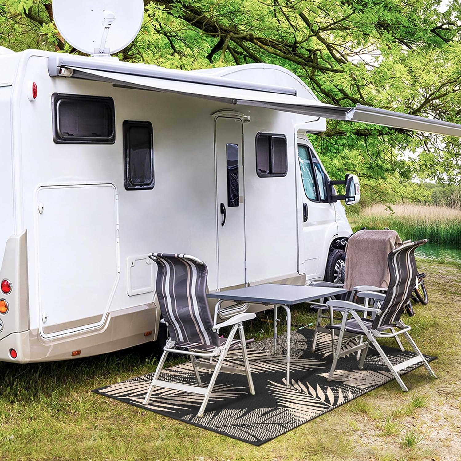 - Perfect Choice For RV Camping: Woven from lightweight plastic straws, these RV outdoor rugs fold compactly to fit in the included carry bag. This portable waterproof outdoor rug is easy to carry, with 4 corner loops and stakes to secure it. Using this camper rug reduces travel fatigue and adds plenty of space for fun β also a stylish touch for fall decor when setting up your campsite