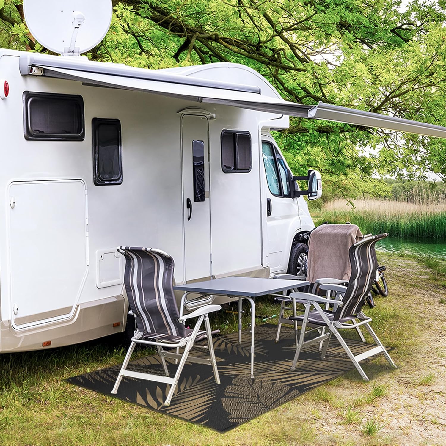 - Perfect Choice For RV Camping: Woven from lightweight plastic straws, these RV outdoor rugs fold compactly to fit in the included carry bag. This portable waterproof outdoor rug is easy to carry, with 4 corner loops and stakes to secure it. Using this camper rug reduces travel fatigue and adds plenty of space for fun β also a stylish touch for fall decor when setting up your campsite