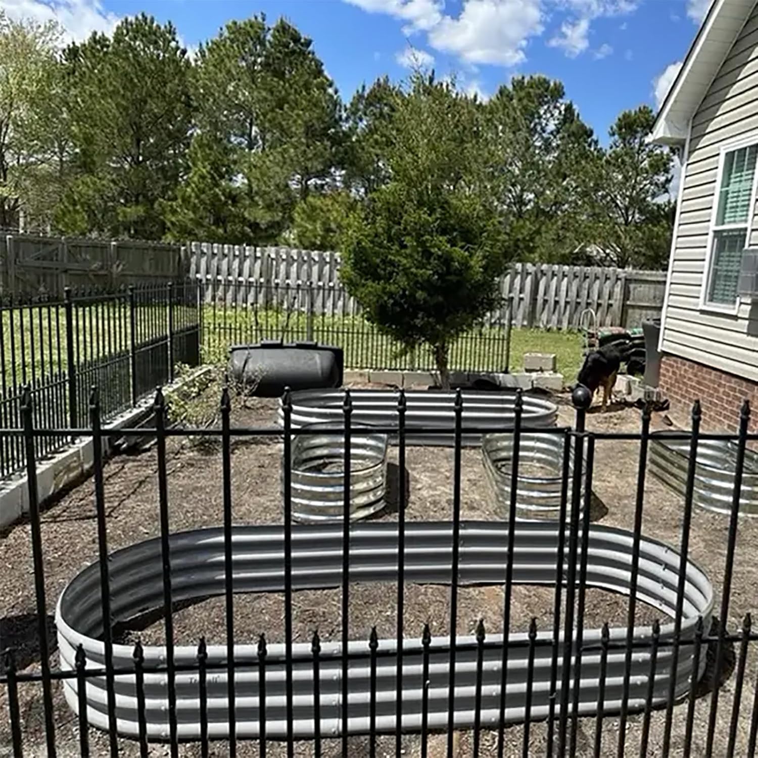 - 【Safety Features】①Anti-rust Coating, do not contaminate soil, safe for plants and humans; ②Oval shape, the raised planter box has rounded corner; ③Thickened crimped edge design, no sharp edges, smooth to the touch; ④ Gloves included; will not hurt your hand when installing or planting