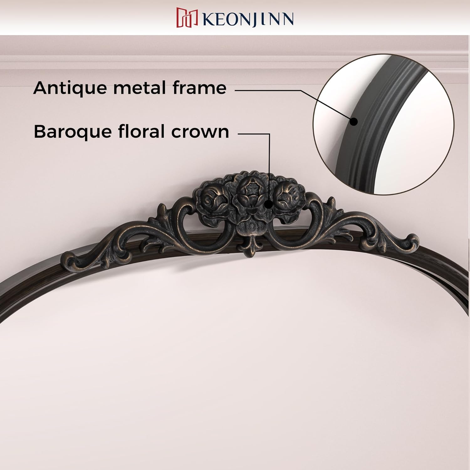 - 【Baroque-inspired Charm】 Keonjinn Black Vintage Mirror is a timeless piece designed to elevate your wall décor. Inspired by the opulence of the Baroque era, this mirror exudes historical charm with its graceful arched design and intricate wooden floral crown, creating a captivating focal point in any room.