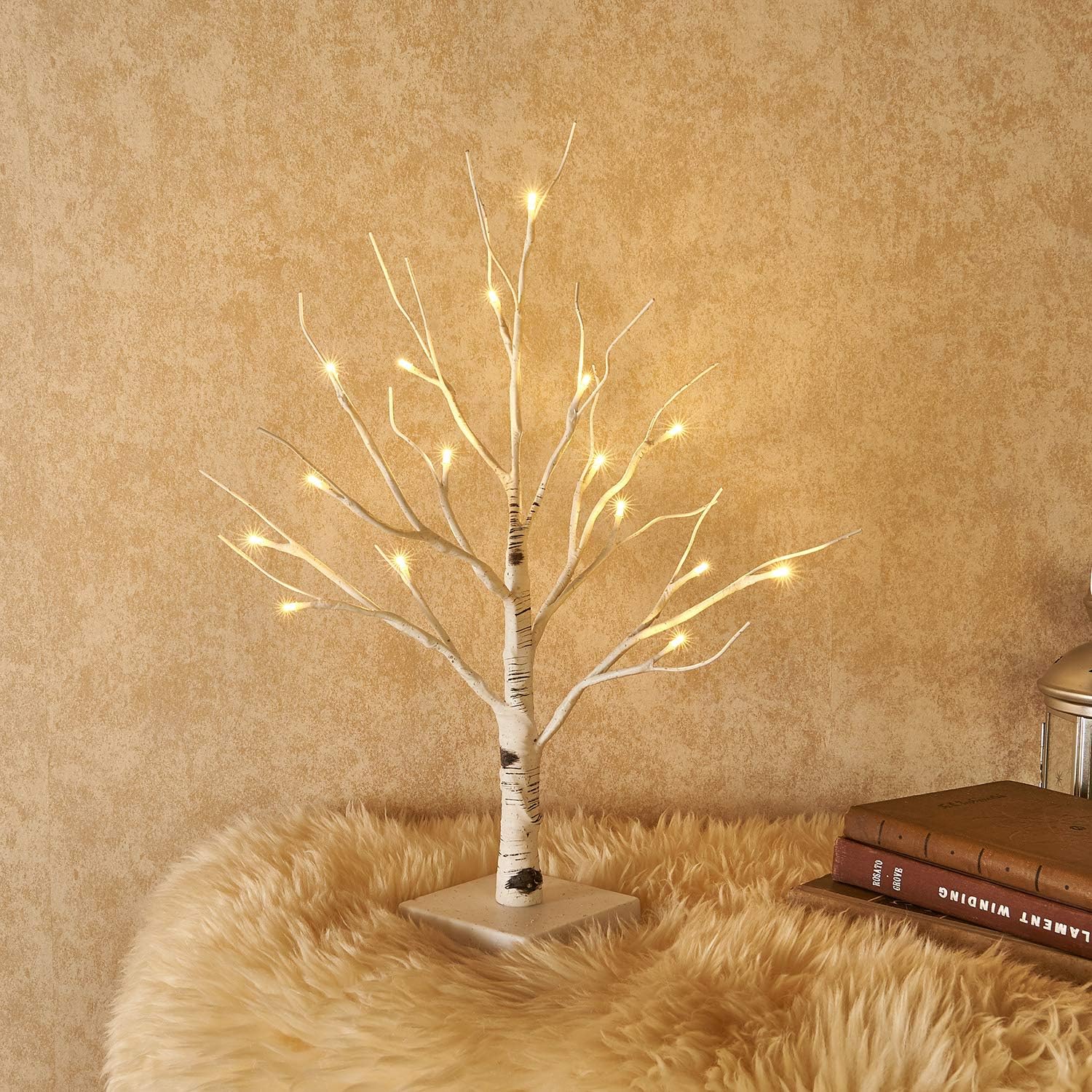 Hairui Lighted Easter Tree with Timer, Tabletop Birch Tree with Lights 18IN 24 LED for Fireplace, Mantle Party Decoration