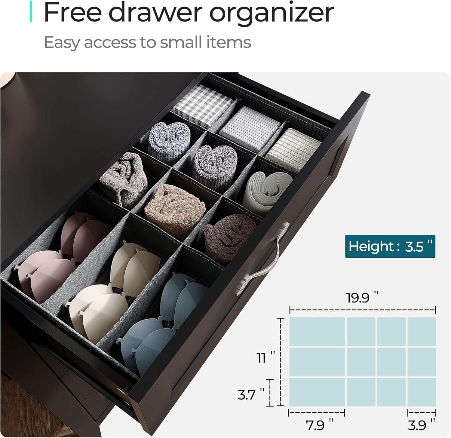 - Space Saver Extraordinaire: Picture this: 5 drawers that can swallow up all those clothes, cozy blankets, and more, measuring 20.7β L x 13β W x 4.7β H. It's like a TARDIS for your stuff. Plus, we've amped up the sturdiness with some corner blocks β because flimsy furniture? Ain't nobody got time for that.