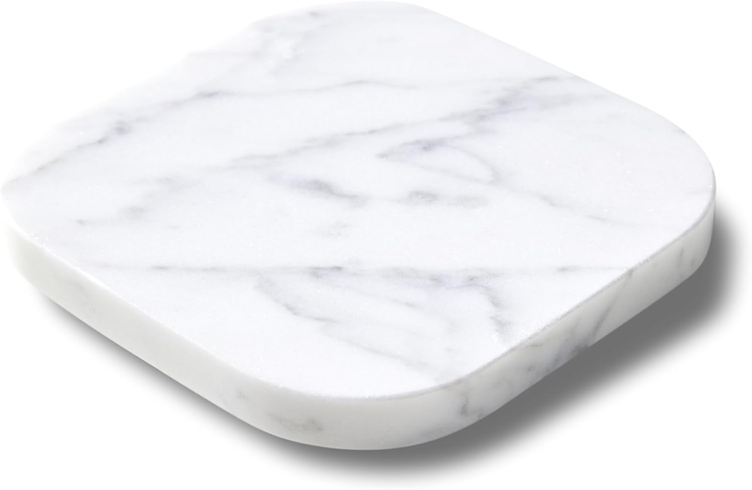 ๐๐ฎ๐ฑ๐ฎ๐ซ๐ฒ ๐๐ญ๐๐ฅ๐ข๐๐ง 100% Marble Tile Coasters โ Set of 4 โ Square Modern Bar Coasters for Drinks, Coffee โStone Holder for Home Dรฉcor, Housewarming Gifts (Carrara White)
