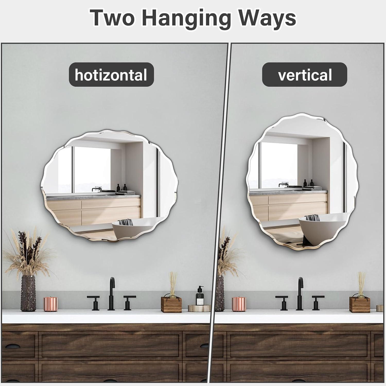 - 【Stylish Design】Frameless design combines with beveled edge gives the oval wall mirror a sleek and contemporary look. Polished edges ensure safety and a refined appearance. It's not only a practical reflection tool, but also an ideal wall decor mirror, adds a touch of sophistication to any room decor.