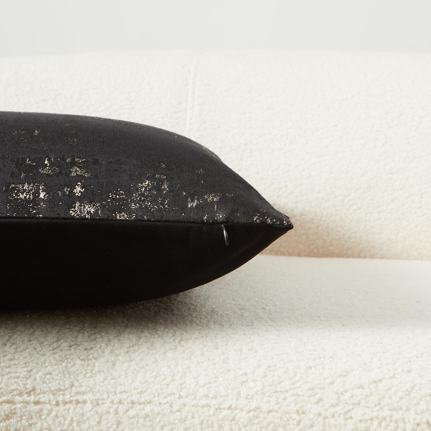 THE-TINOART Black & Gold Modern Luxury Pillow Cover 18x18 - Jacquard Embroidery with Metallic Thread, Reversible Decorative Throw Pillow Cover for Sofa/Bed, Velvet Backing